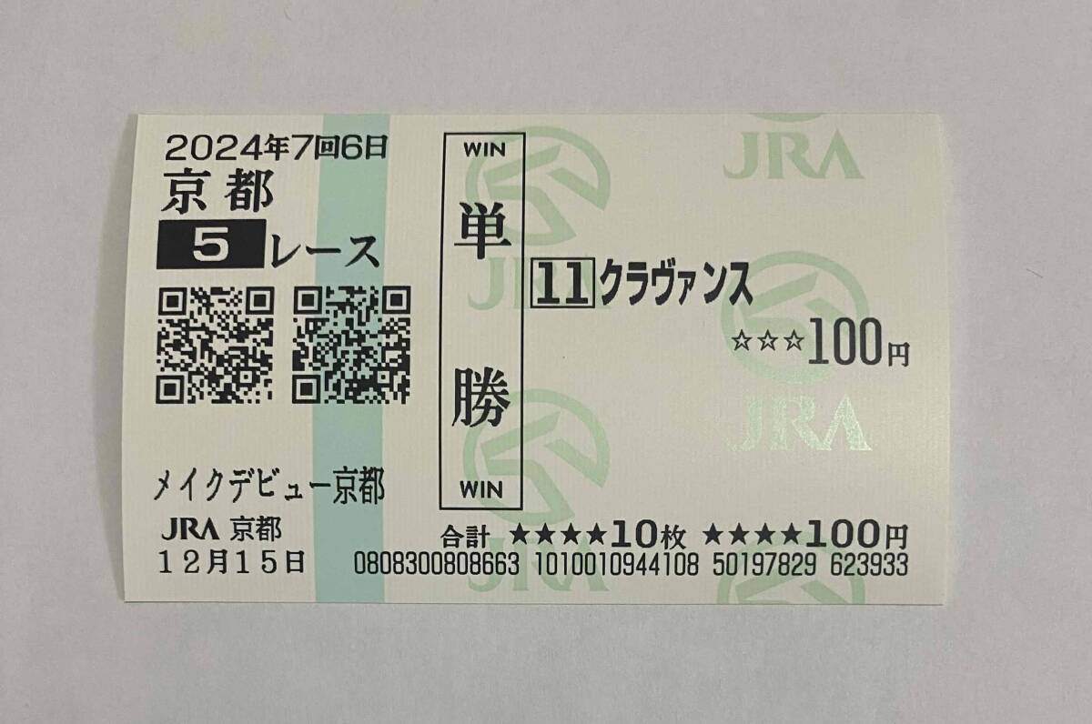 クラヴァンス メイクデビュー京都 新馬戦 現地単勝馬券
