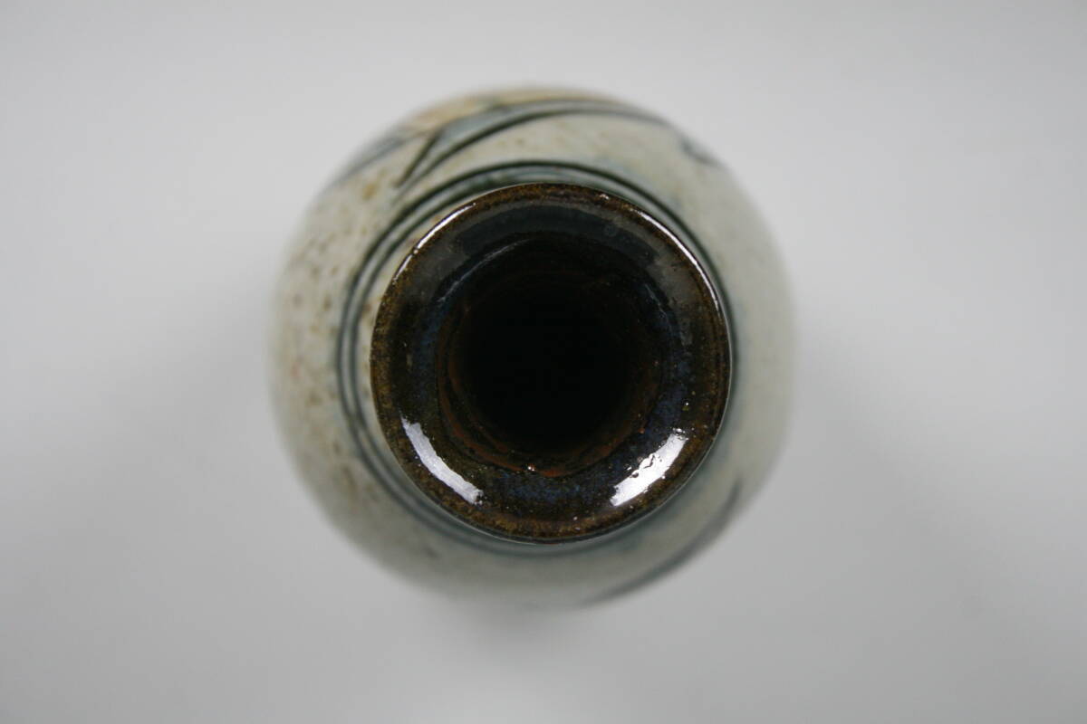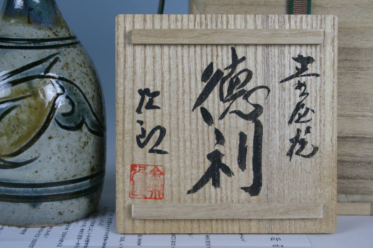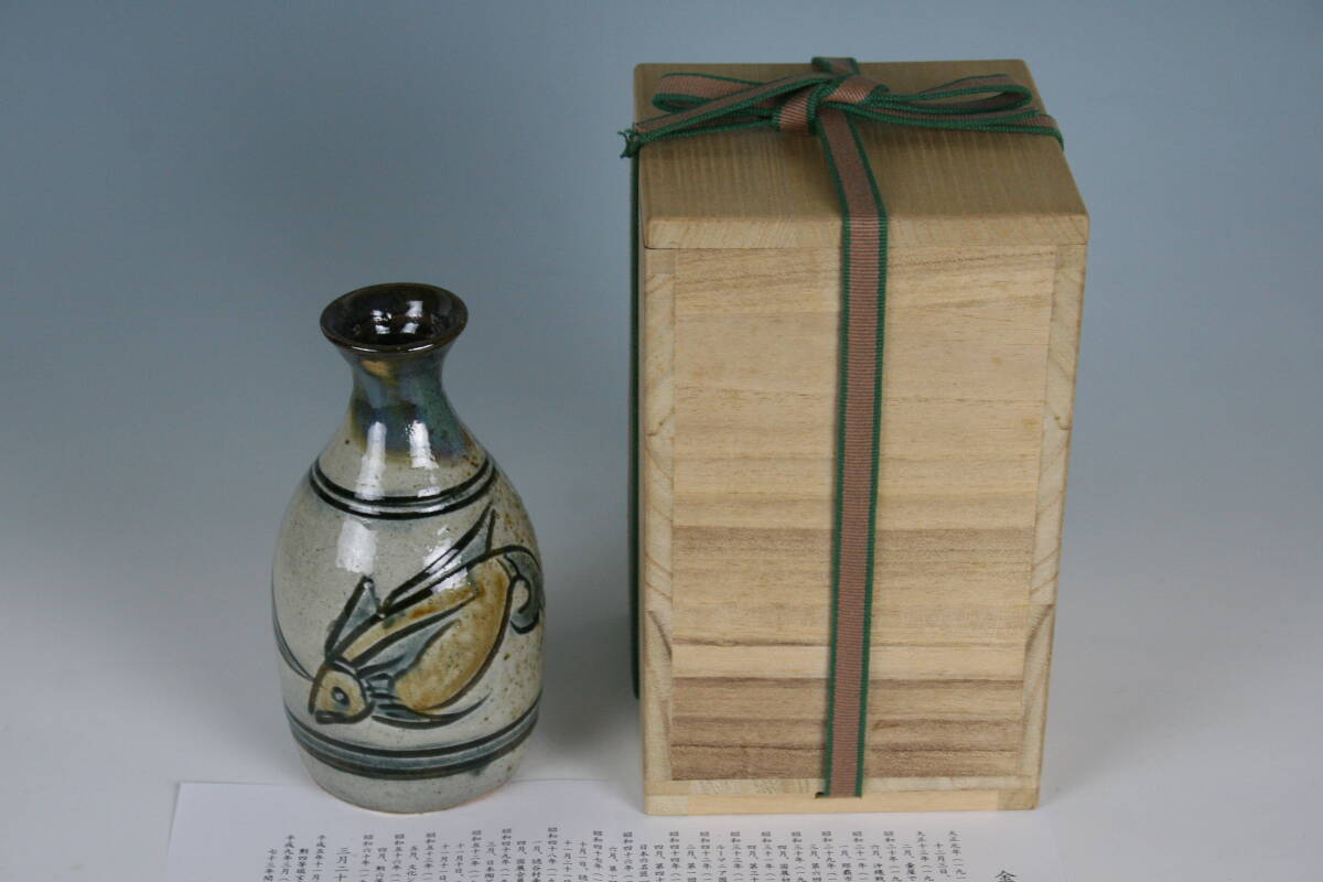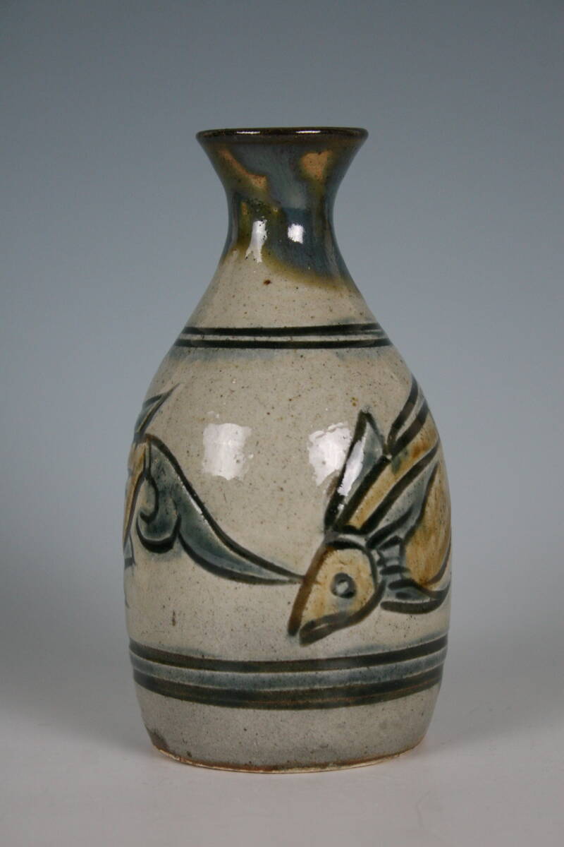素朴で力強く見事な焼き上がり、次郎先生のまさに代表作と言われる魚文です。勢いある魚文「魚文長徳利」をぜひこの機会にご愛蔵下さい。