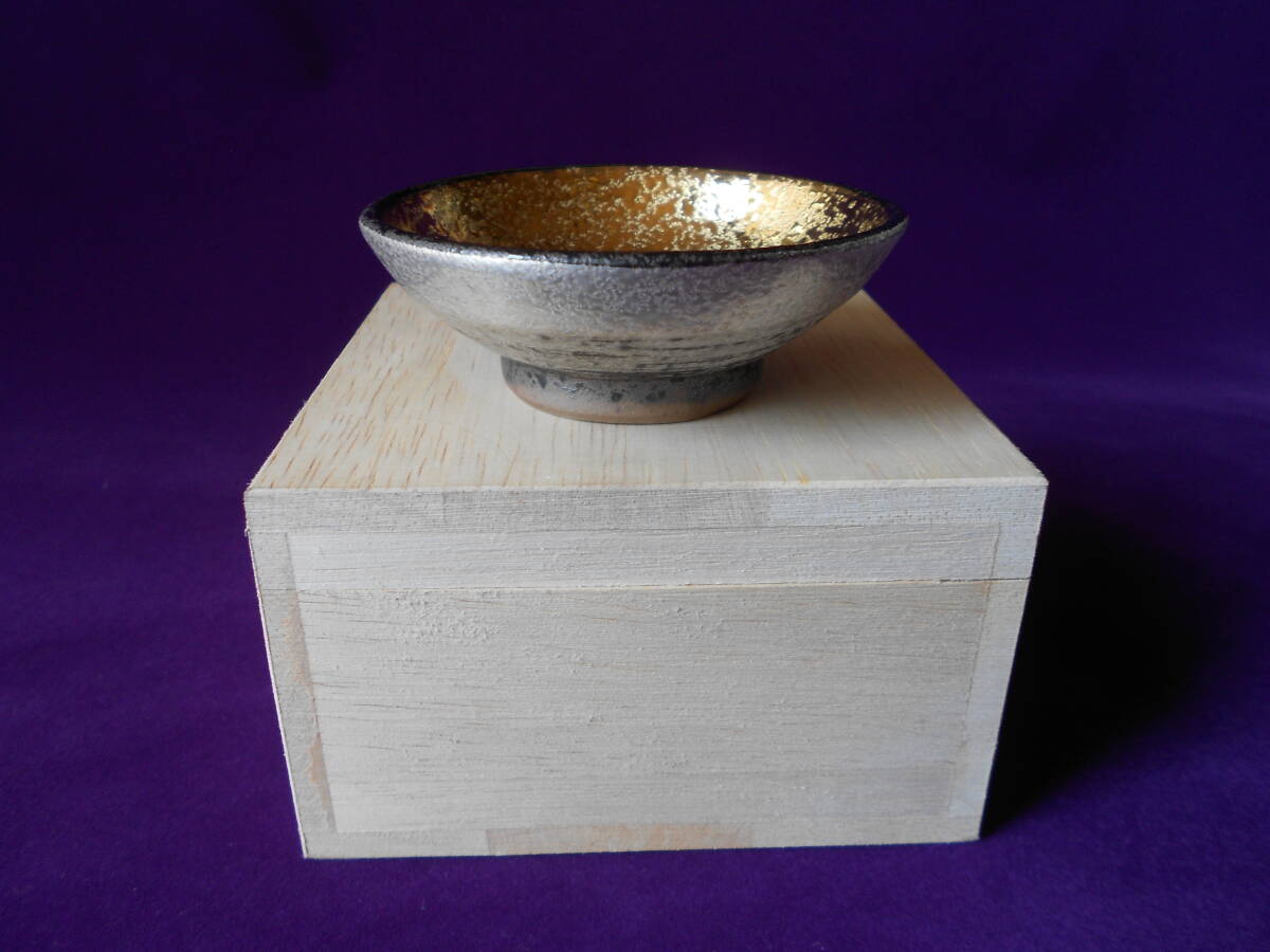 酒器! 丸藤 ☆南蛮金銀彩平盃☆ 新品 木箱 杯 ぐい呑 徳利 片口 酒注ぎ 美濃焼 ギフト