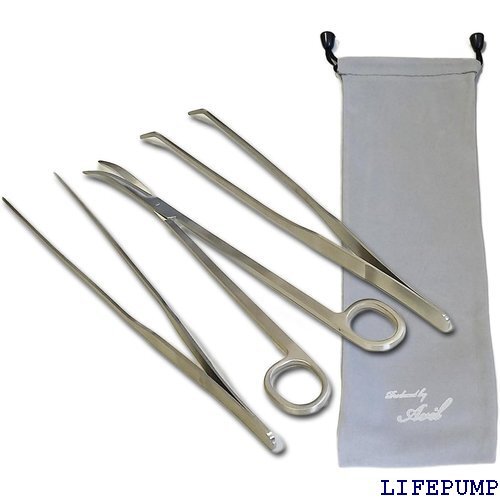 ステンレススチール製、水槽で水草のレイアウト、トリミングに仕様するのハサミとピンセットのセットです。爬虫類の飼育などにも使用できます。AVILオリジナル収納袋付きでのお届けとなります。