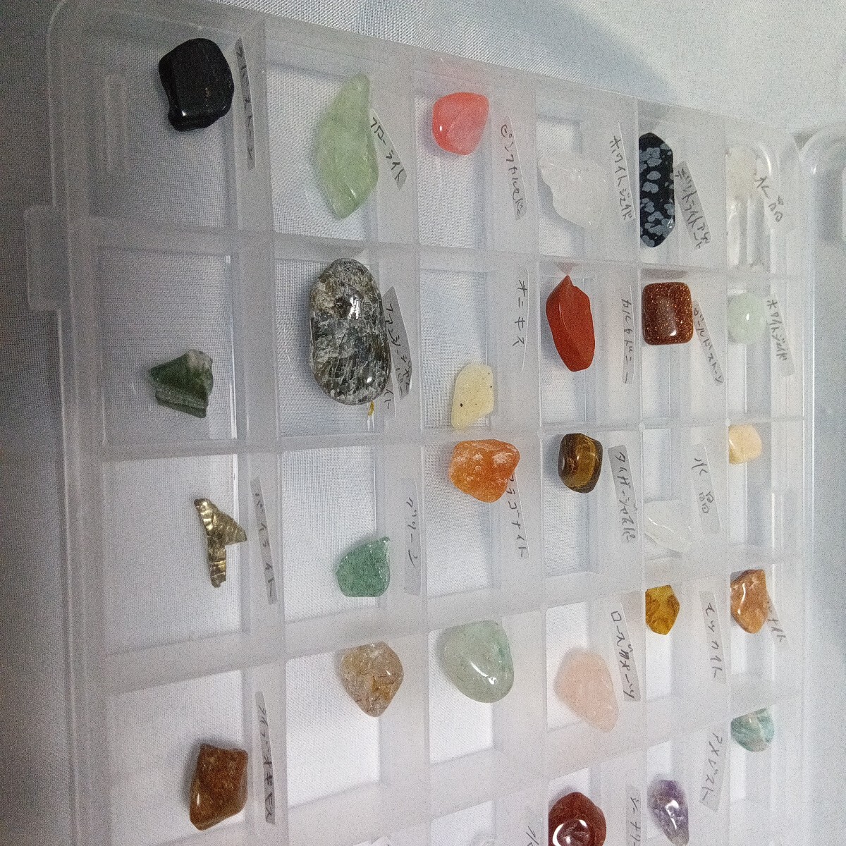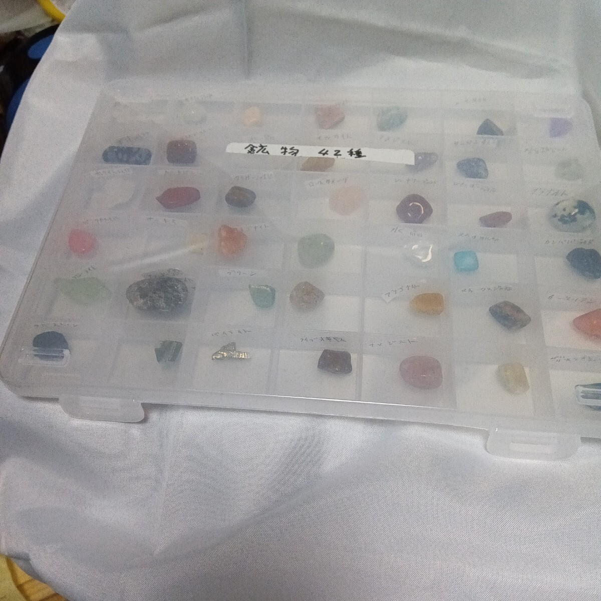 大部分の鉱物名は分かったので、ラベルを貼りましたが、分からない鉱物が数個ありました。