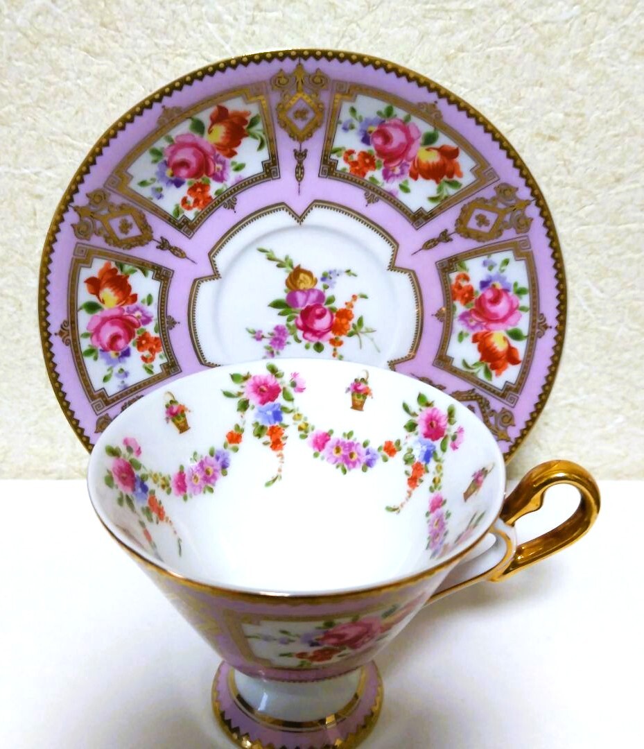 ①【貴重品】カップ&ソーサー 金彩花柄豪華装飾 クラシック 優雅