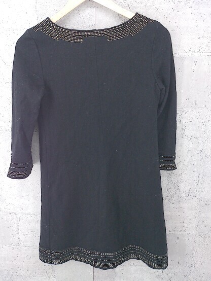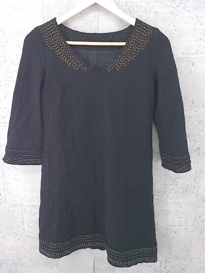 ◇ UNITED ARROWS ユナイテッドアローズ 七分袖 膝丈 ワンピース 38 ブラック ゴールド *