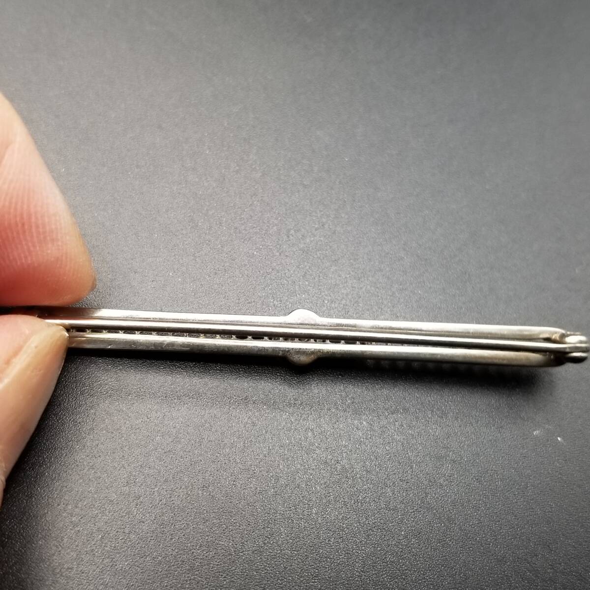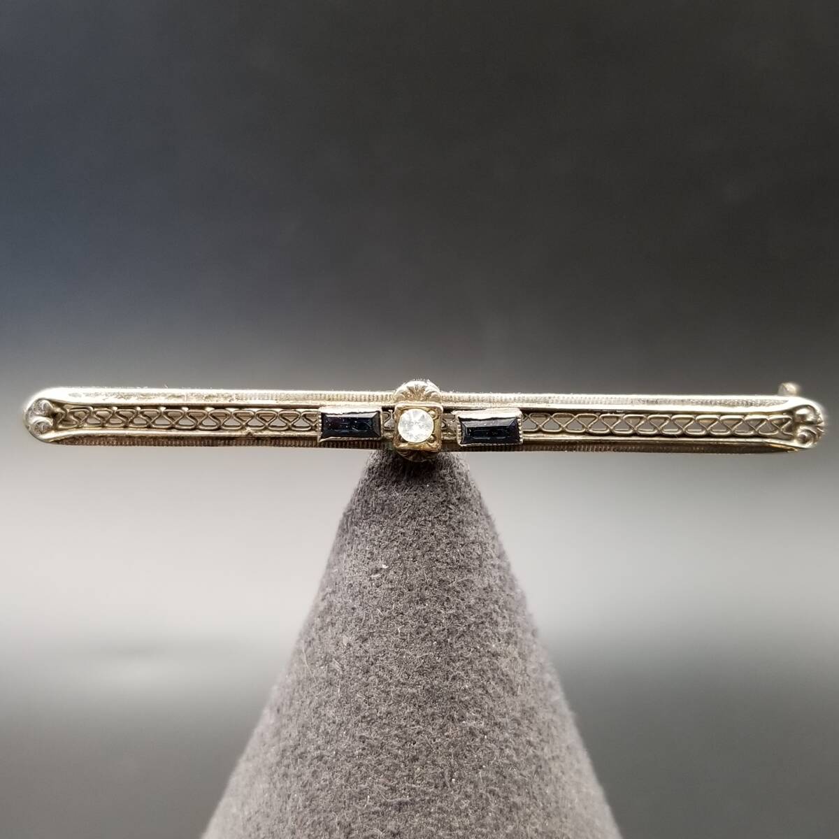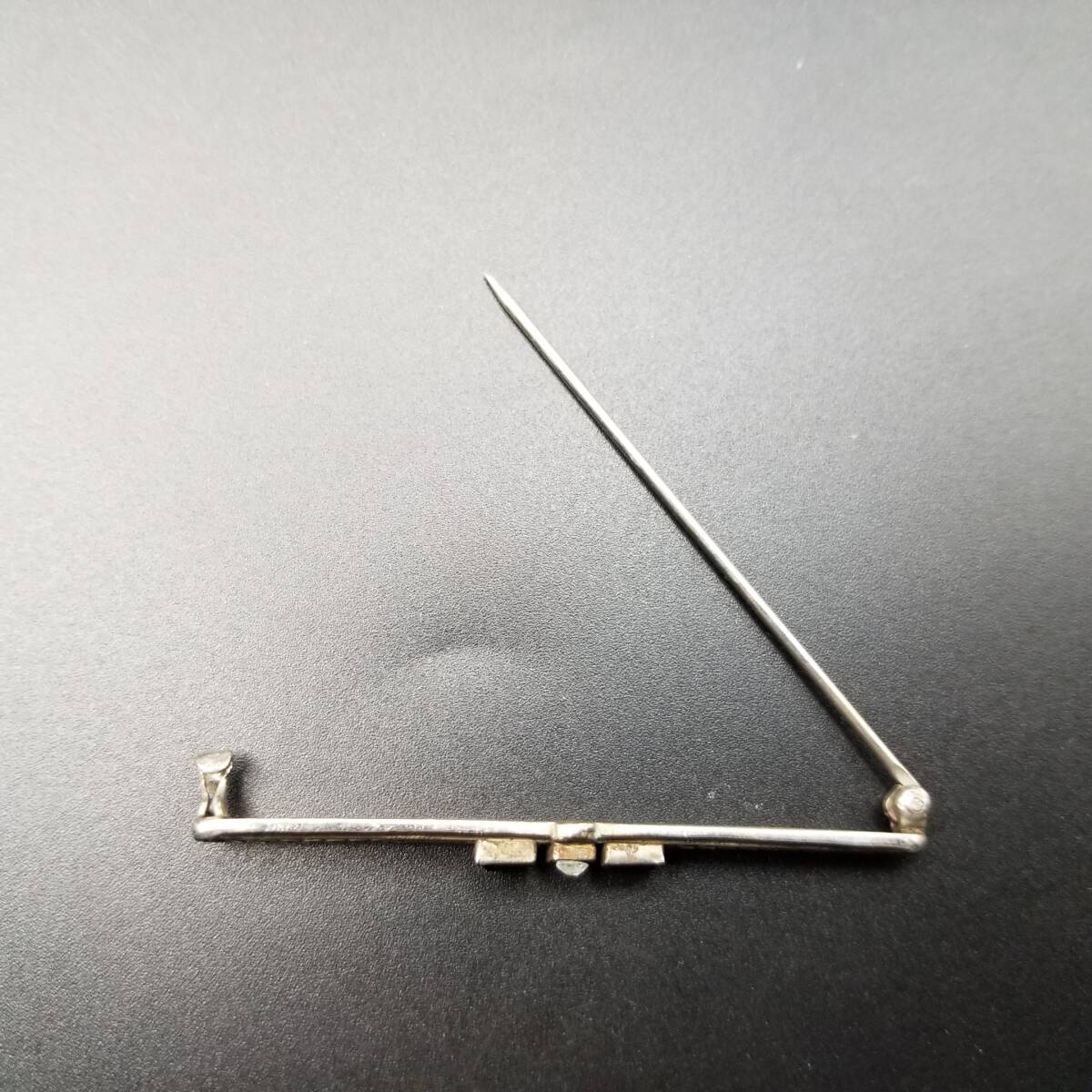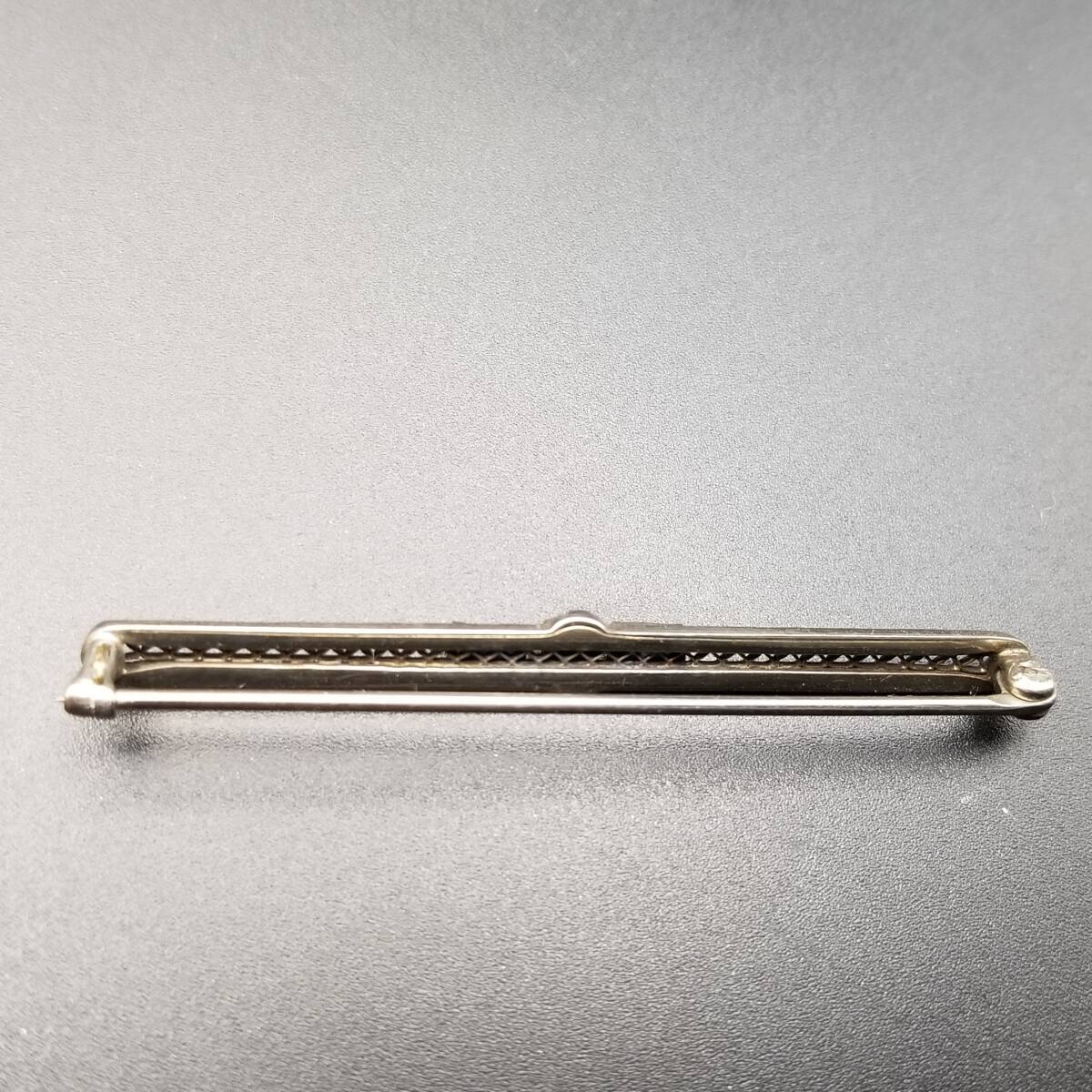 アールデコ 横長 バー レース ヴィンテージ ブローチ シルバートーン ラインストーン アクセント レトロ 細長 上品 ラペルピン R15-H