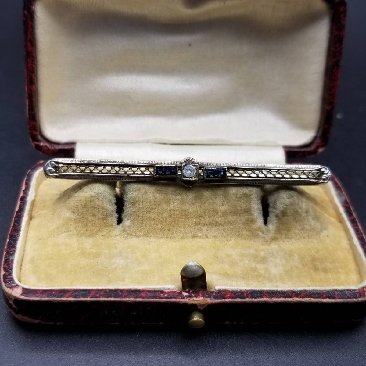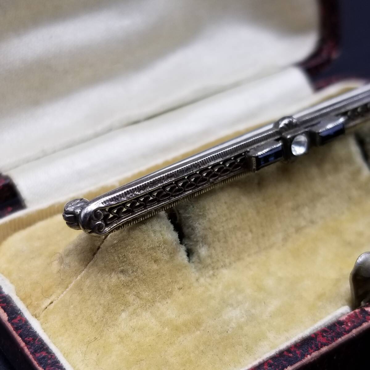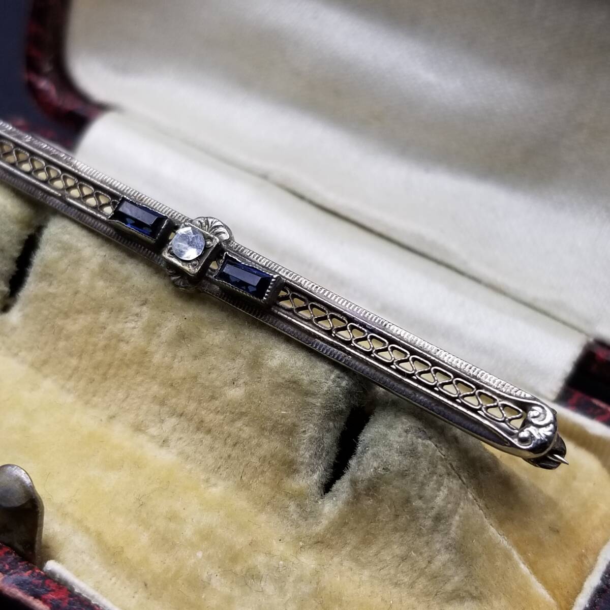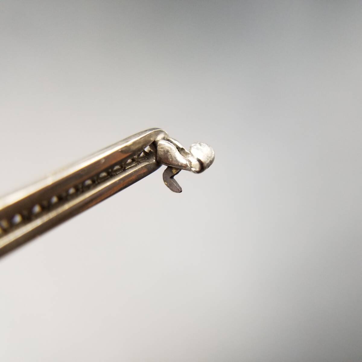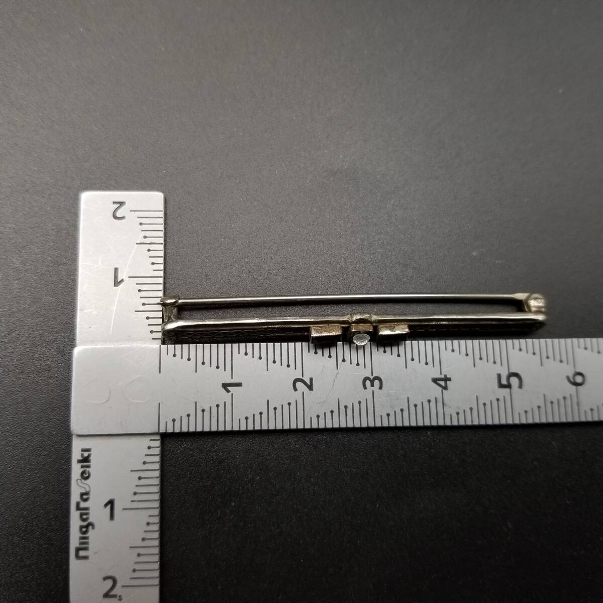 アールデコ 横長 バー レース ヴィンテージ ブローチ シルバートーン ラインストーン アクセント レトロ 細長 上品 ラペルピン R15-H