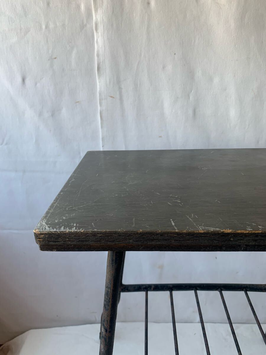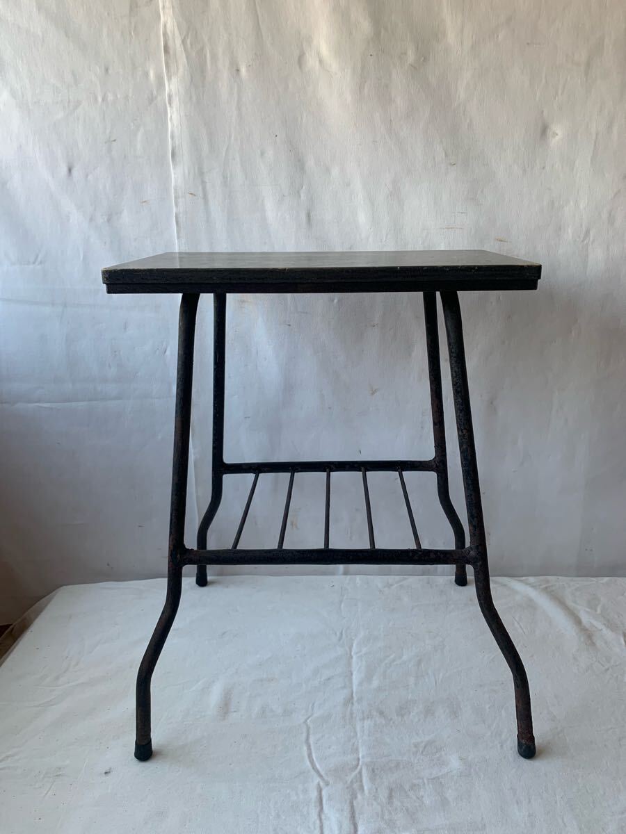 経年の雰囲気が素敵なアイアン脚のサイドテーブルです。お部屋のインテリアやお店のディスプレイ、イベント出店時の什器などに使って頂くと素敵だと思います。インダストリアルな空間演出にいかがでしょう。