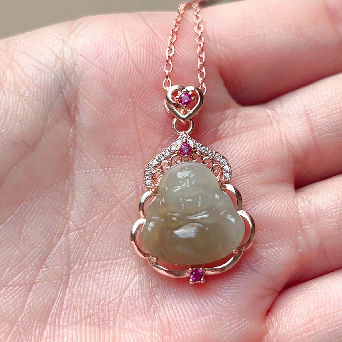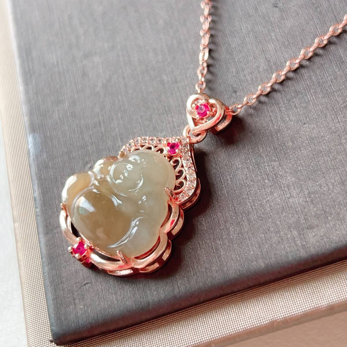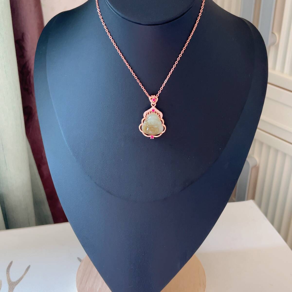 ♪和田玉♪ヒスイ♪ネックレス♪ペンダント♪弥勒形 彫刻♪お守り♪天然石♪パワーストーン♪巾着袋付き♪プレゼントにも036P4301