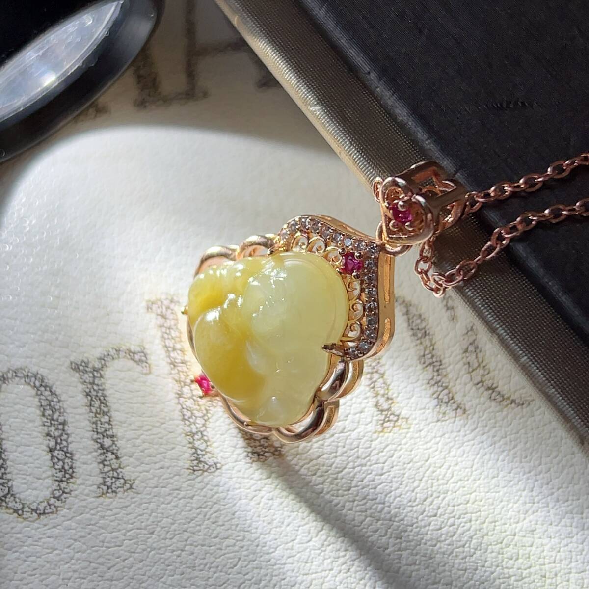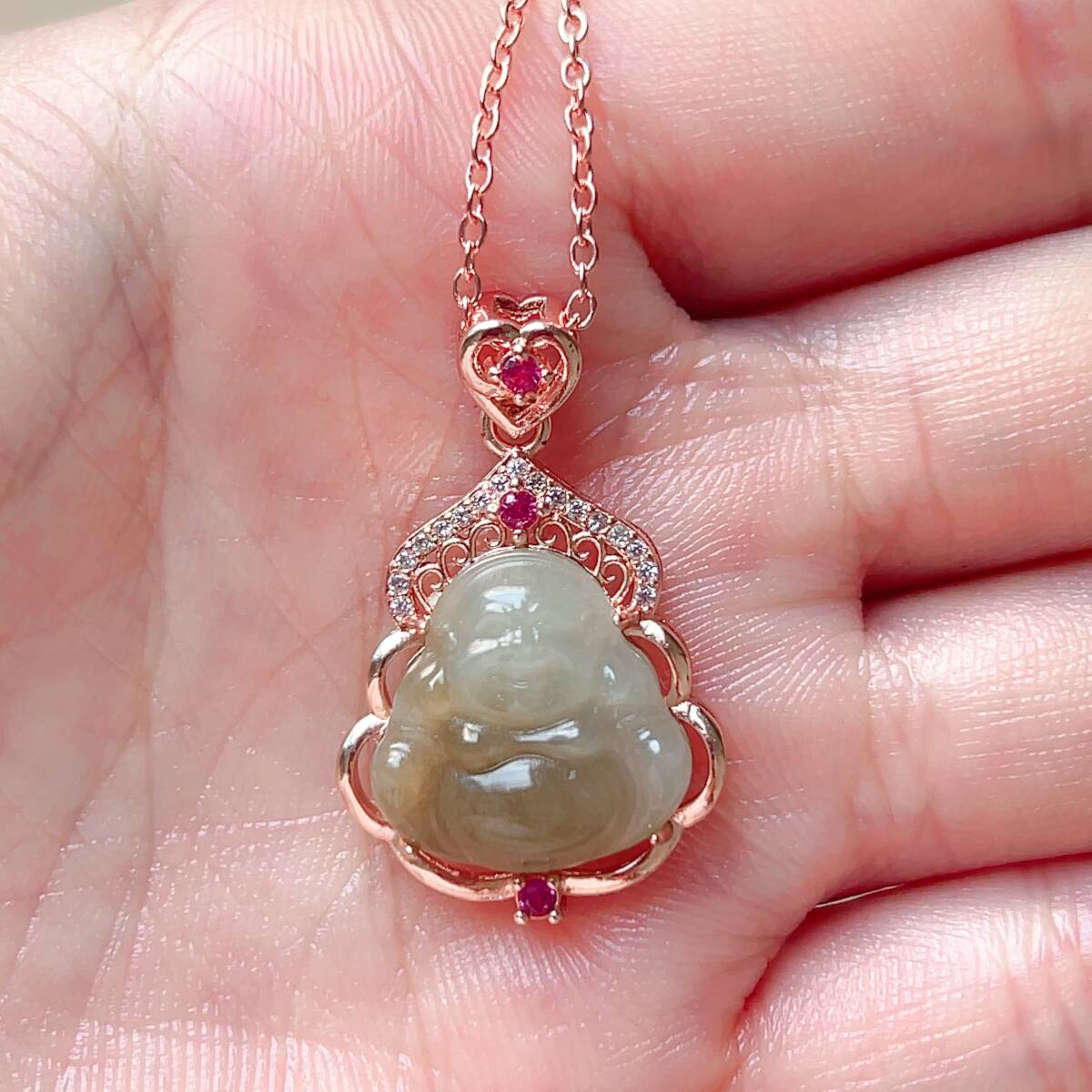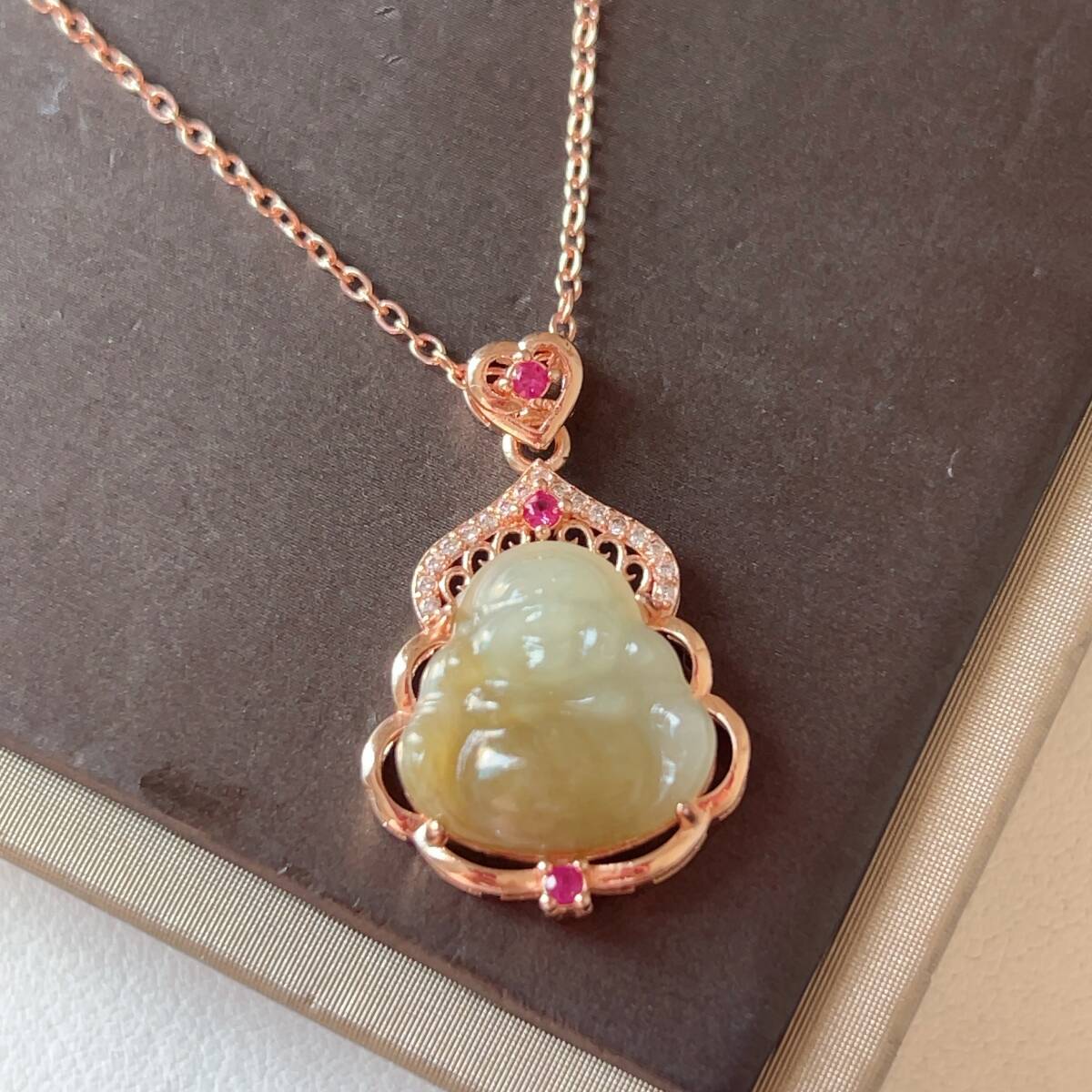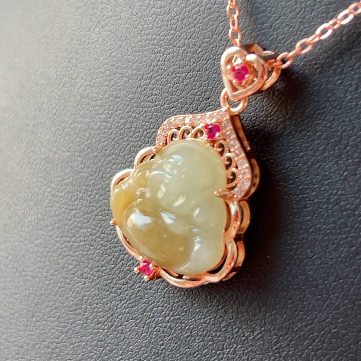 ♪和田玉♪ヒスイ♪ネックレス♪ペンダント♪弥勒形 彫刻♪お守り♪天然石♪パワーストーン♪巾着袋付き♪プレゼントにも036P4301