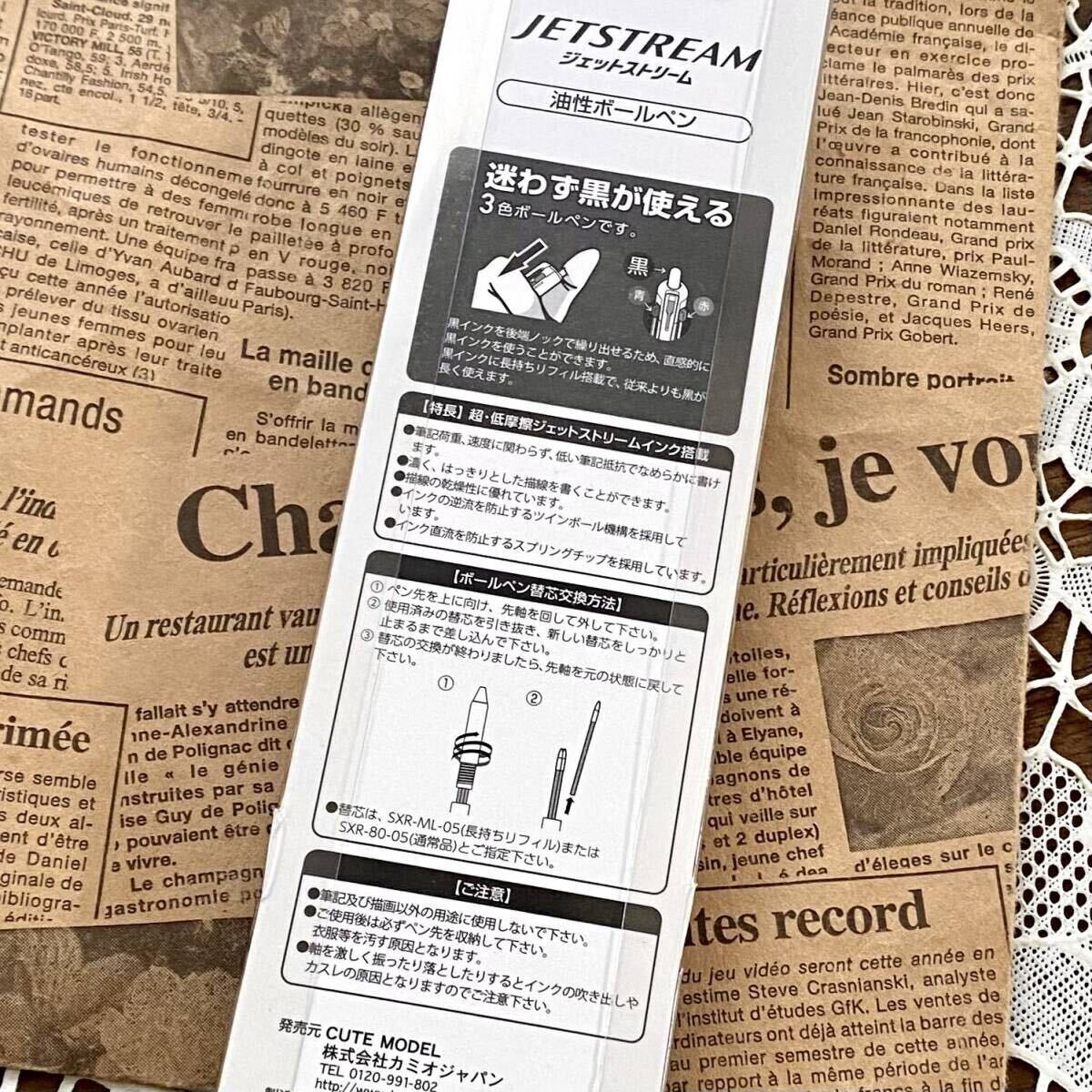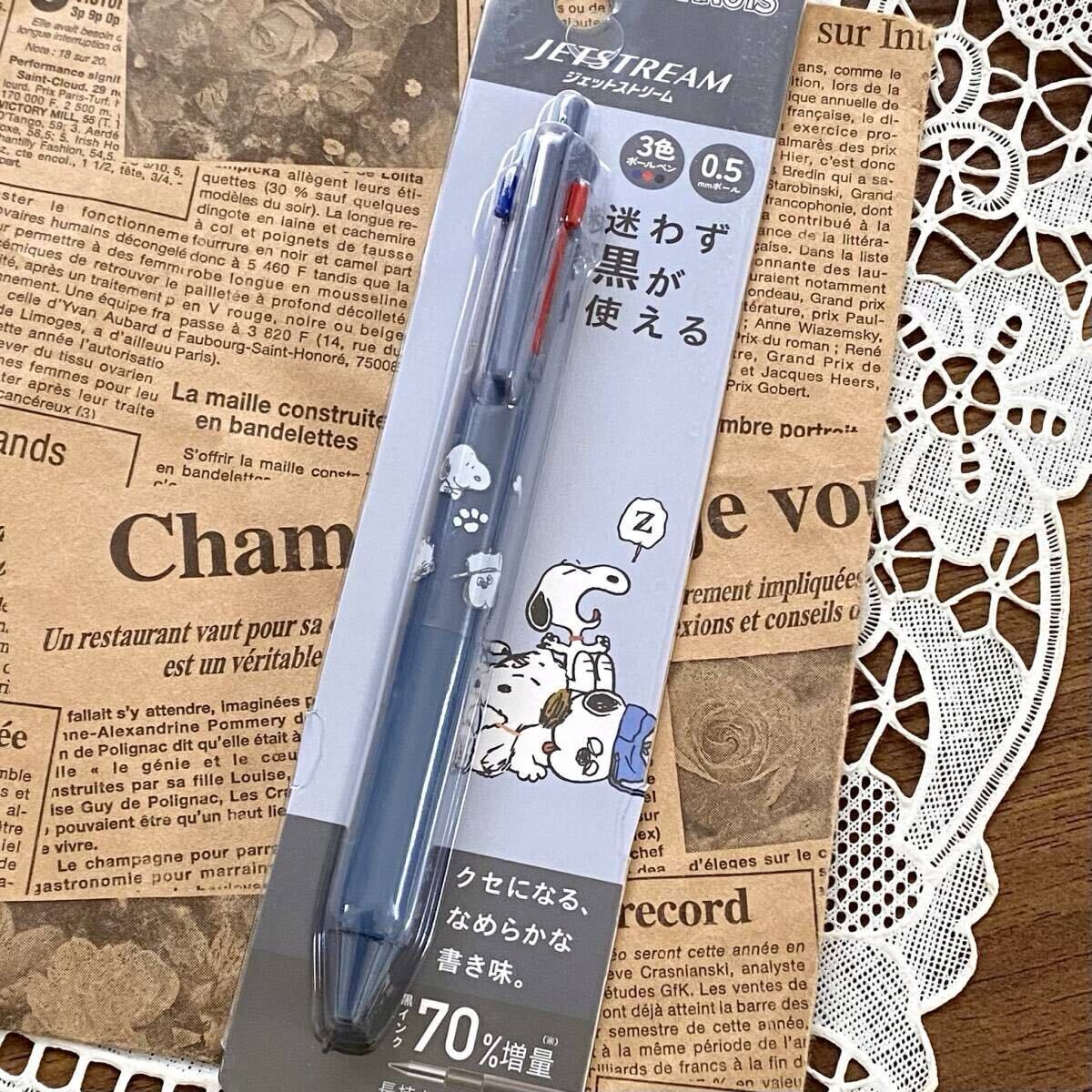 スヌーピー柄のジェットストリーム3色ボールペンと替え芯のセットです♪