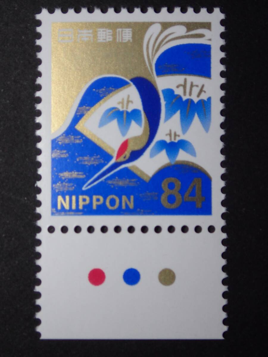 ◆ 慶弔切手 第七次 扇面に竹模様と鶴 84円 CM付 NH極美品 ◆