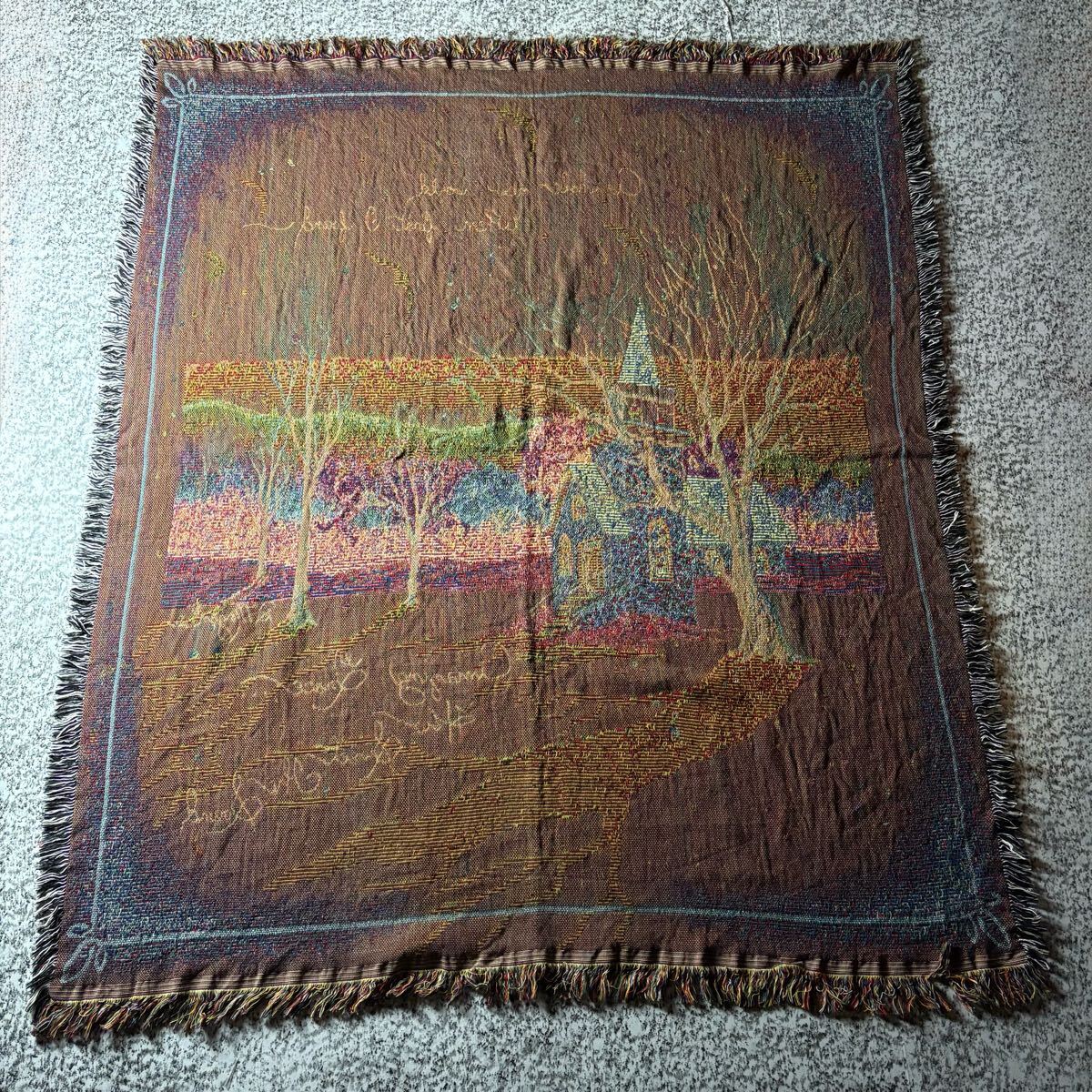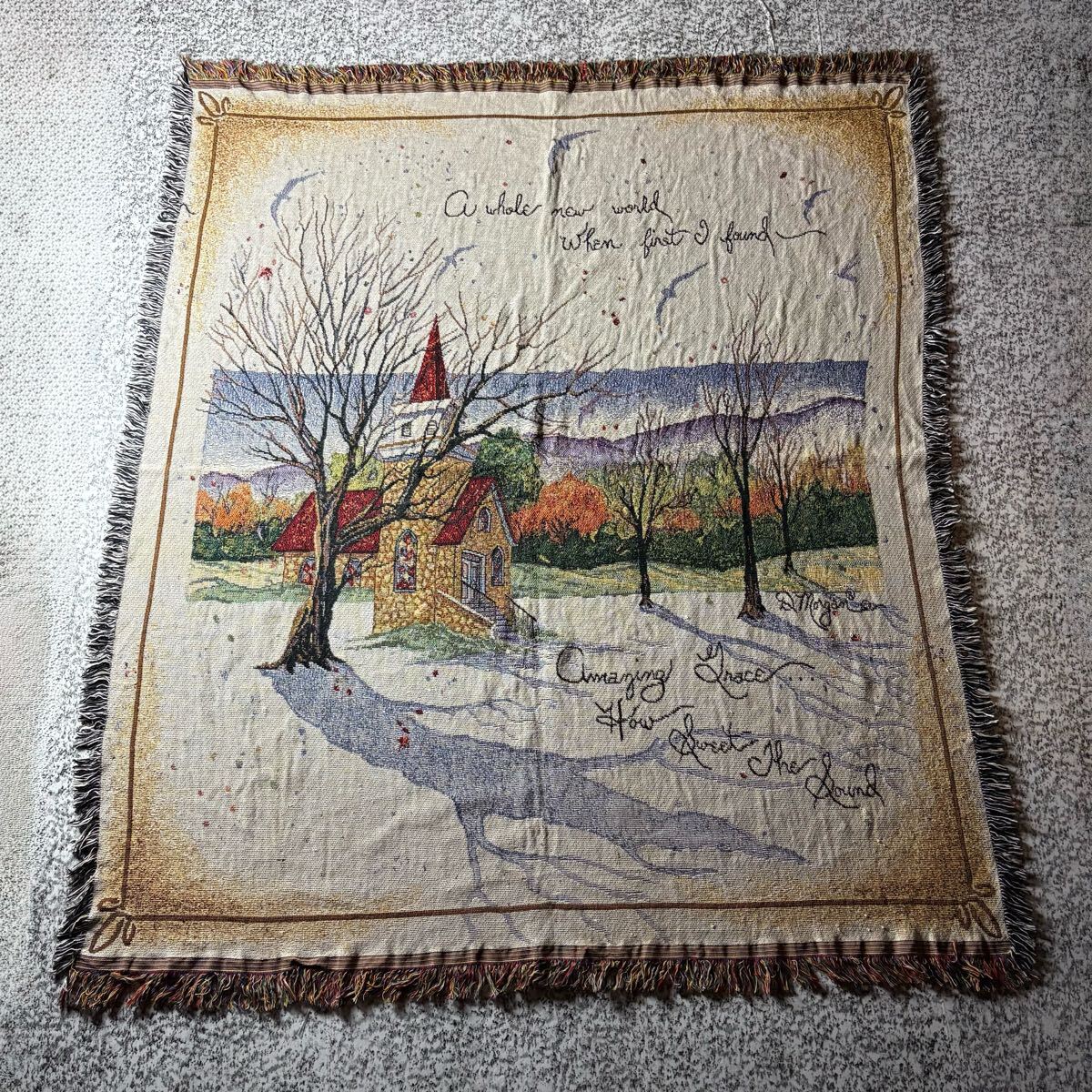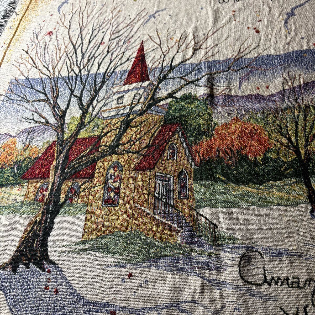 【90sオールド】アメイジンググレイス 教会 風景画 ラグ タペストリー マット  カーペット マルチカバー テーブルクロス 絨毯