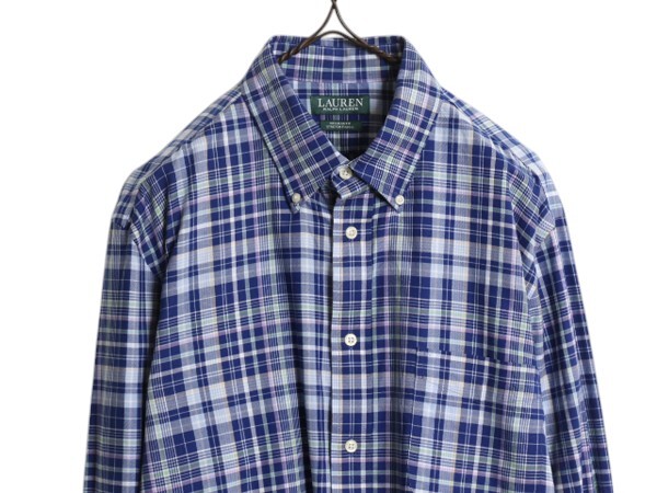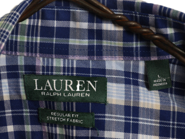 商品名 | ローレン ラルフローレン チェック 長袖 ボタンダウン シャツ メンズ L ポロ コットン ストレッチ ワンポイント ポケット付き マルチカラー |