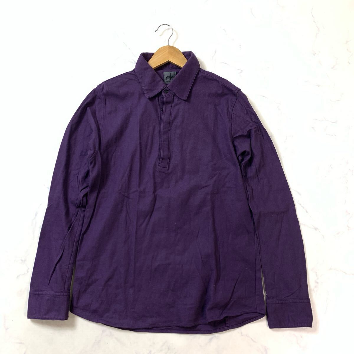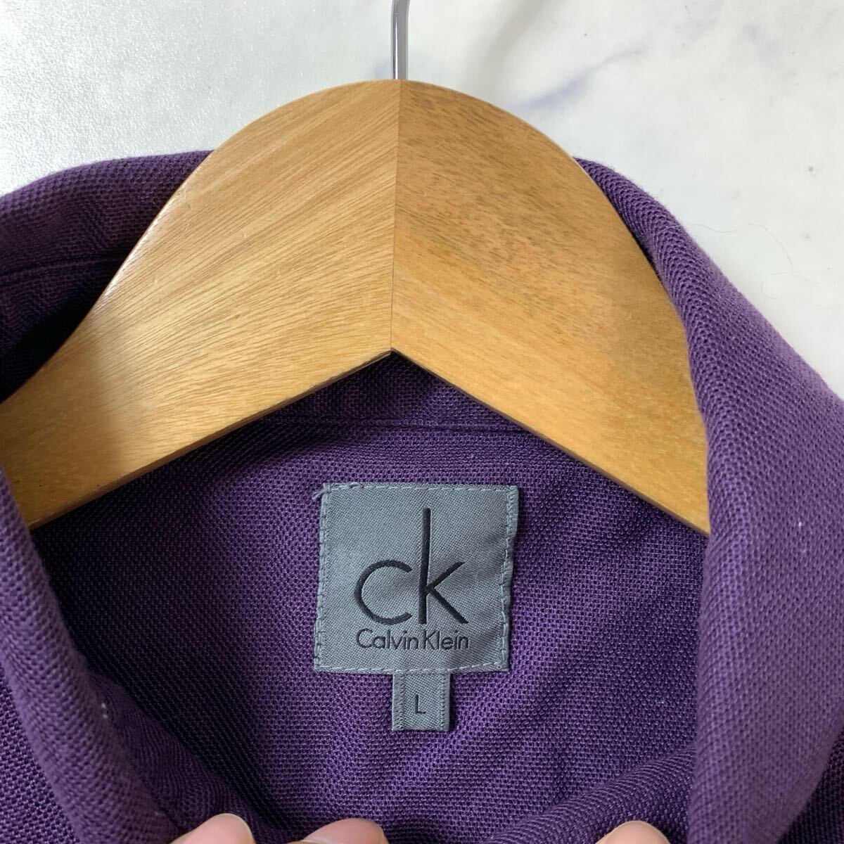 カルバンクライン 長袖ポロシャツ パープル コットン L YA9208