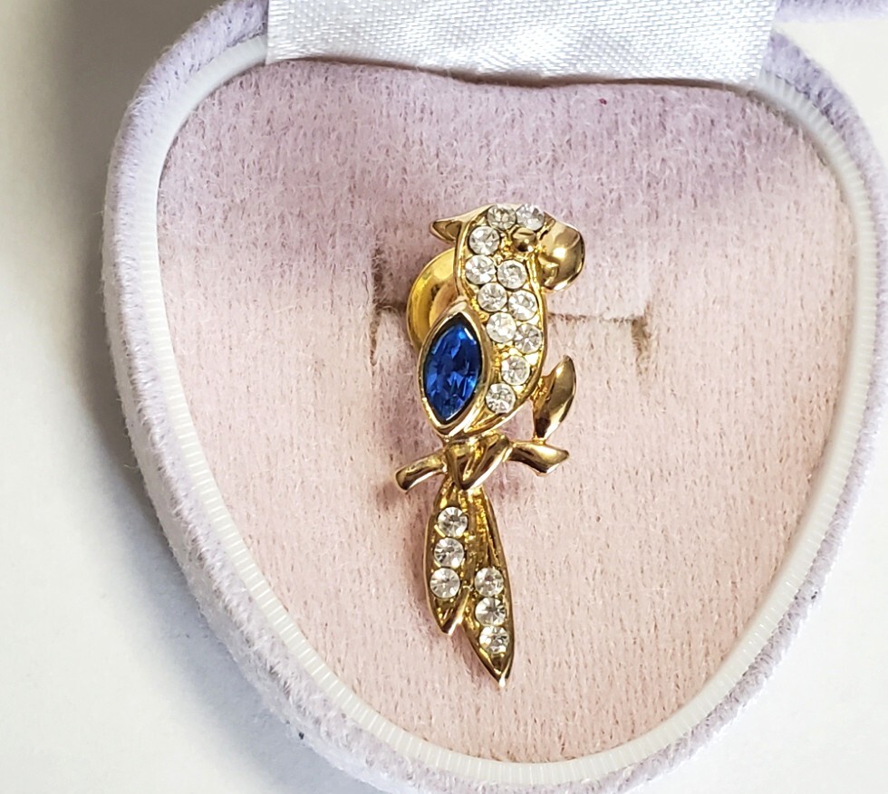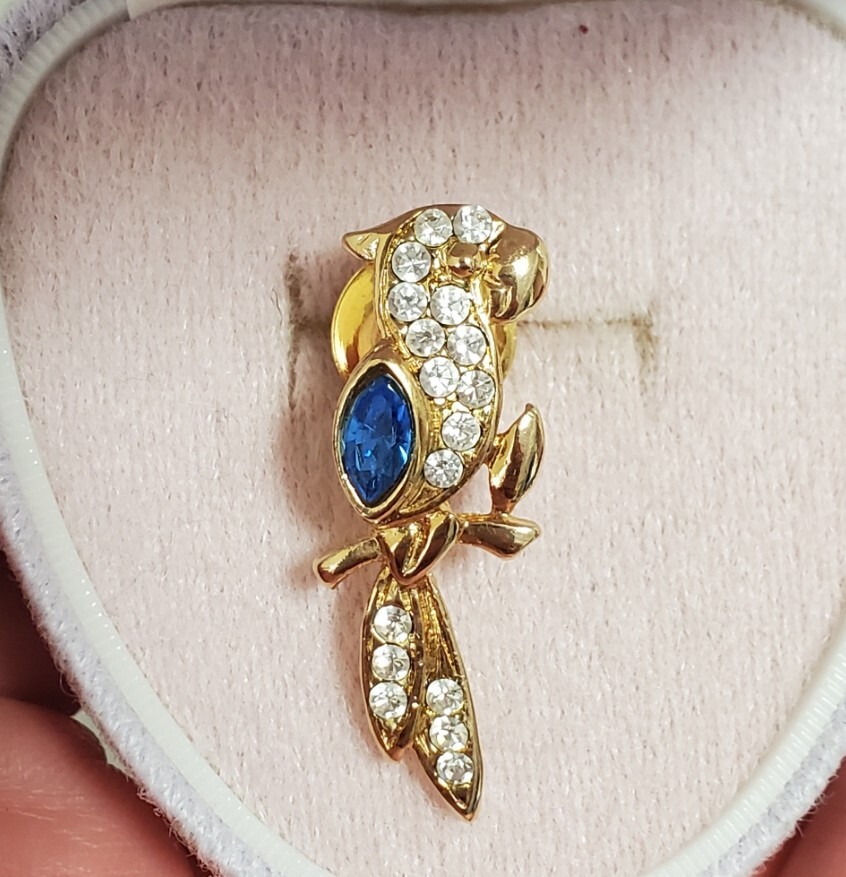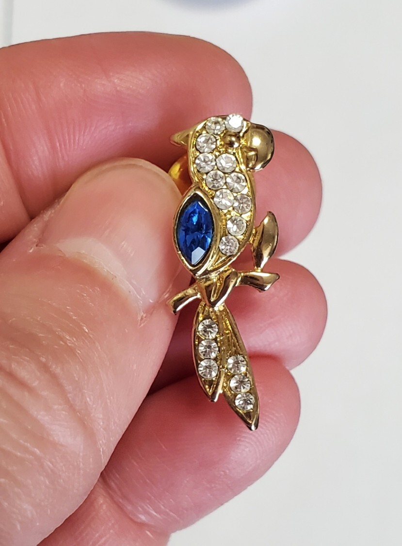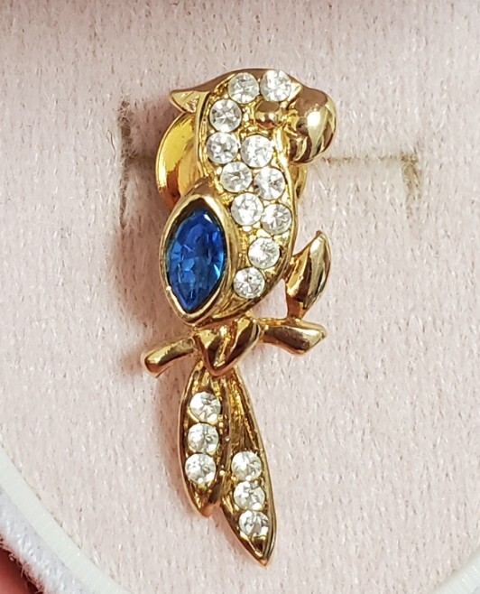 オウム ラインストーン ブローチ ピンバッジ ゴールドカラー レディース 3,5g 美品