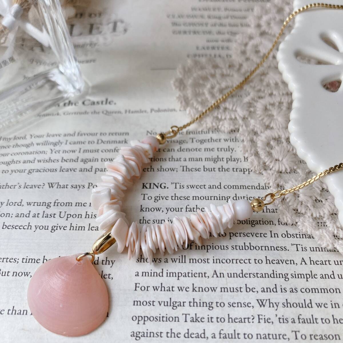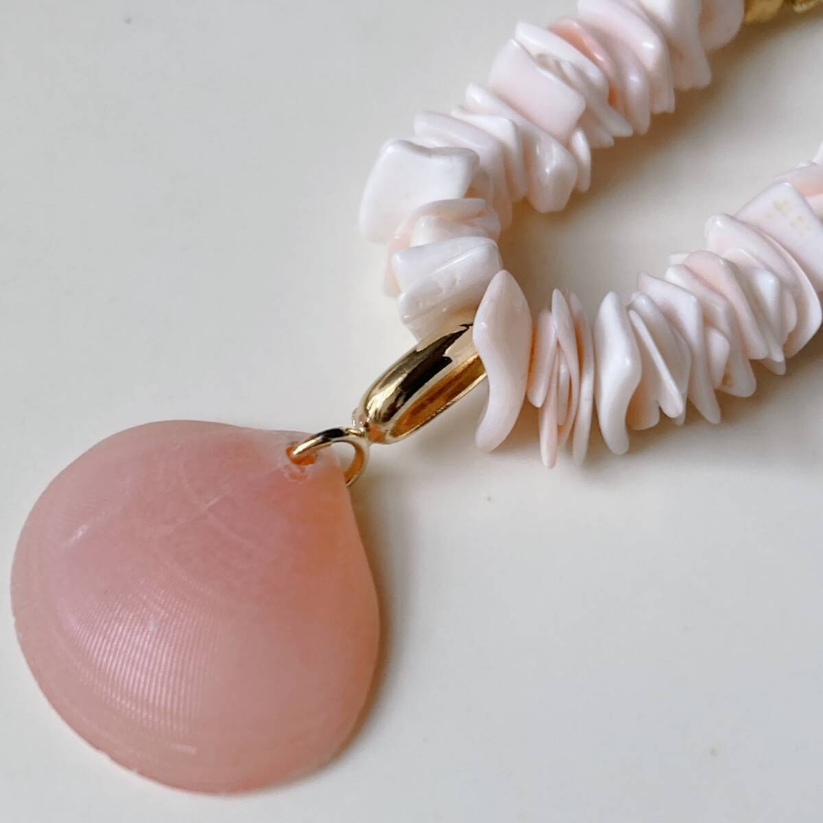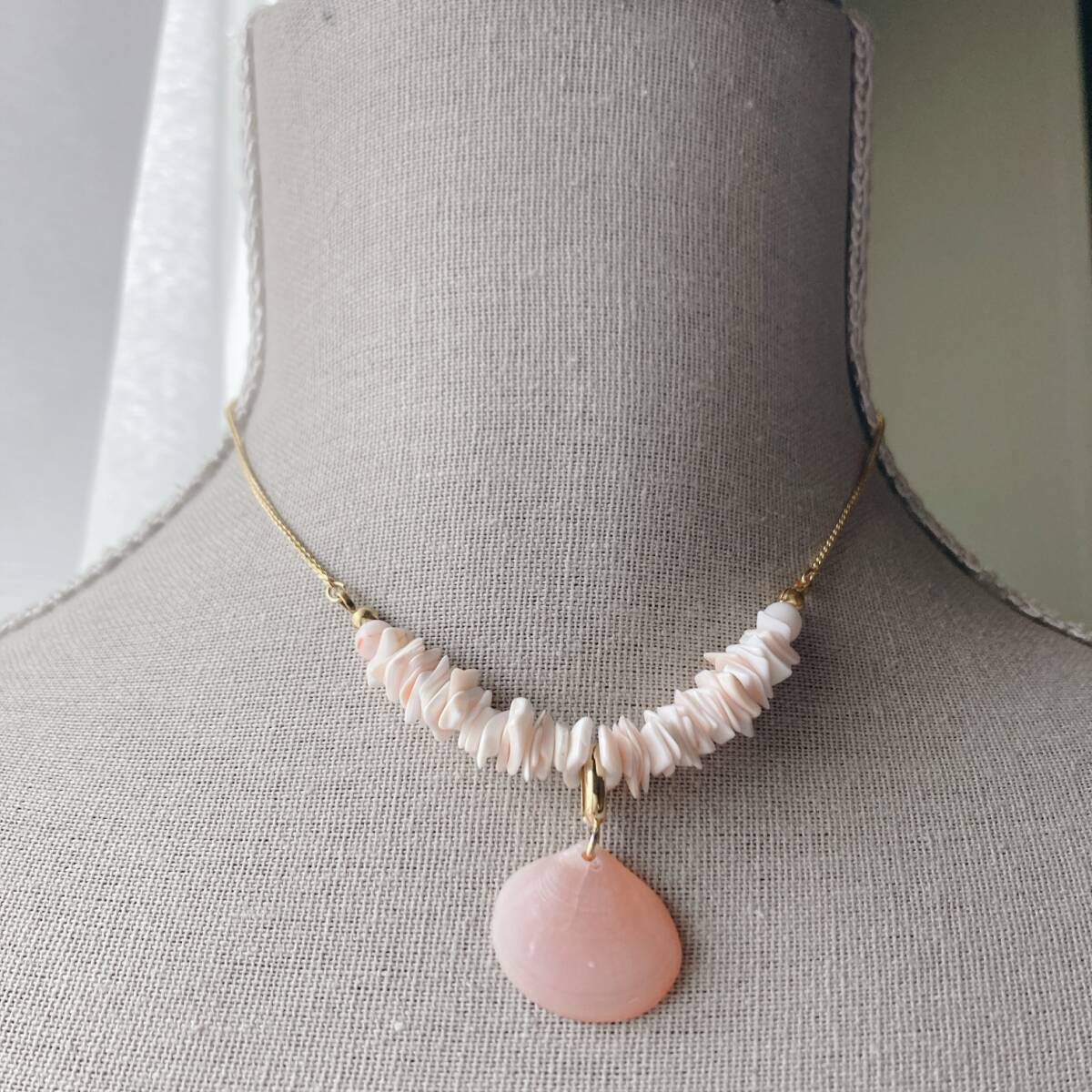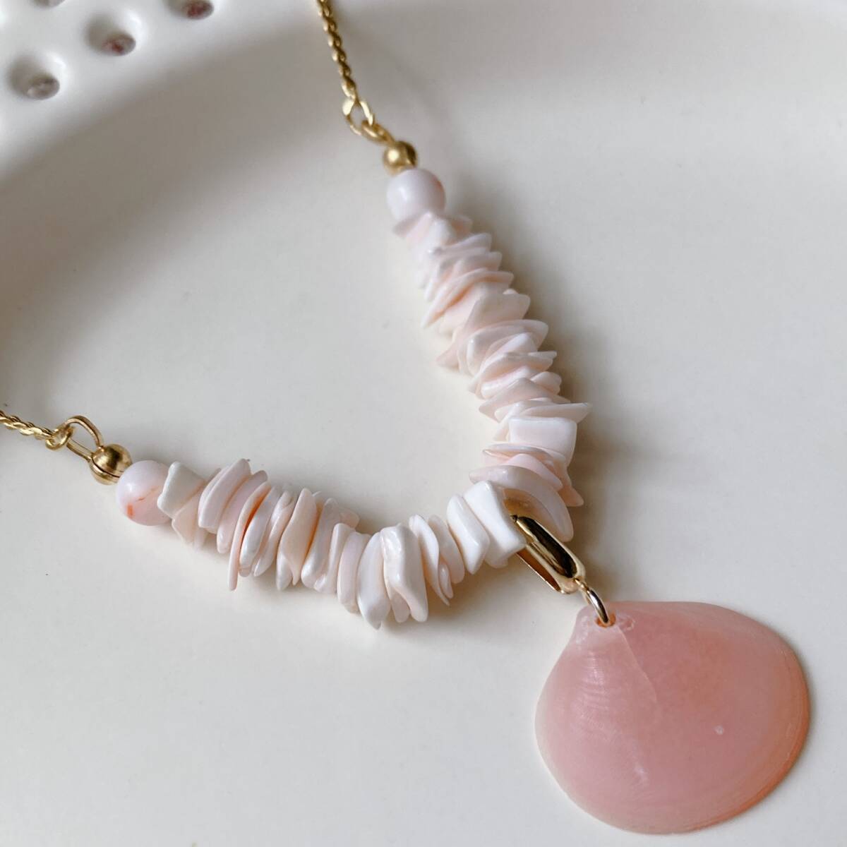 ビーチジュエリー ネックレス シェル クラムチップ プカシェル ピンク ゴールド ショート☆vintage jewelry accessoriesR0439