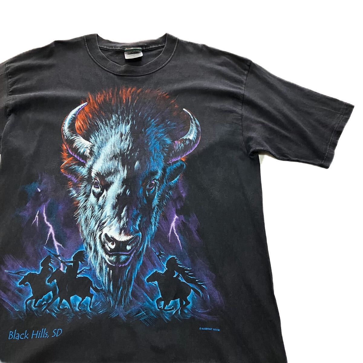90s HABITAT 半袖Tシャツ シカ アニマルプリント 羊 シープ ハビタット ヘインズ ハーネス オニータ XL