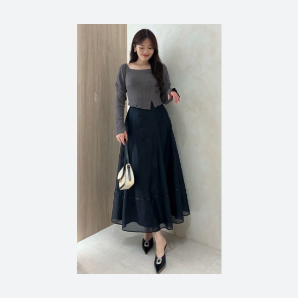 華やかでドレッシーなスタイルにクラスアップしてくれるオーガンジーロングスカート。