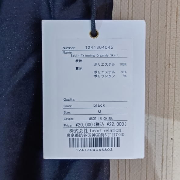 【タグ付き】Satin Trimming Organdy Skirt スカ-ト black Her lip to