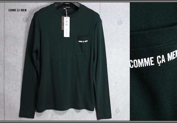 新品 コムサメン 秋冬 吸湿発機能 Air Cotton あったか 長袖Tシャツ M/緑/深緑ふかみどり/定価1.6万円/COMME CA MEN