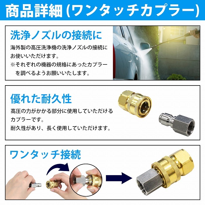 【送料無料】『15m』 高圧洗浄機用 高圧 ホース 3分 3/8 業務用 エンジン式 高圧洗浄機 延長 15メートル ワンタッチ 海外カプラー付属