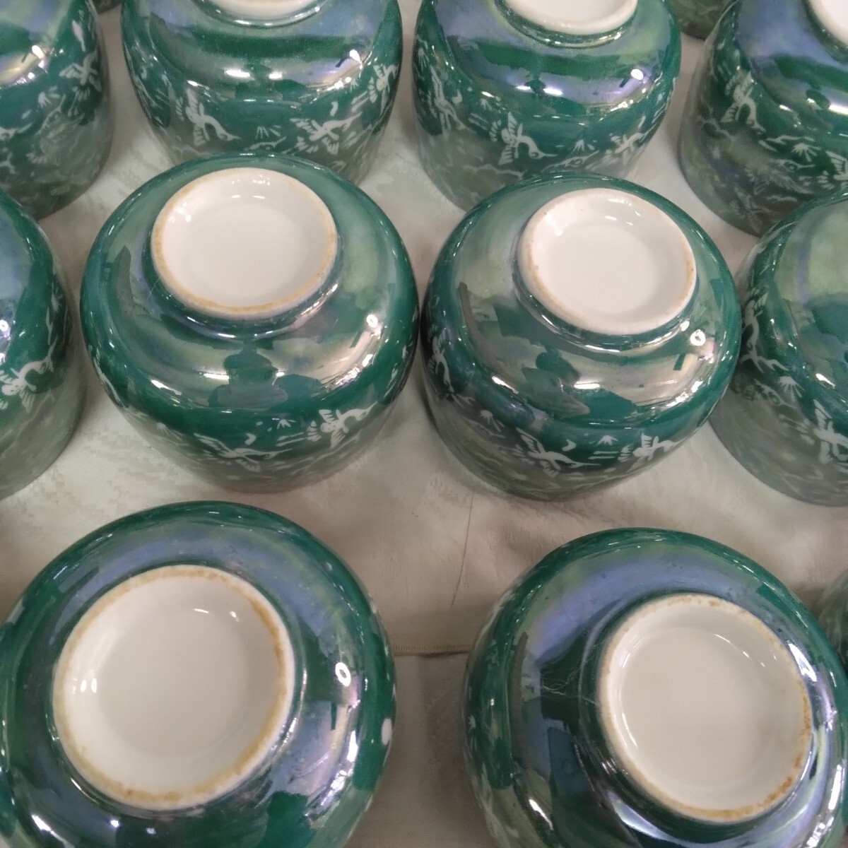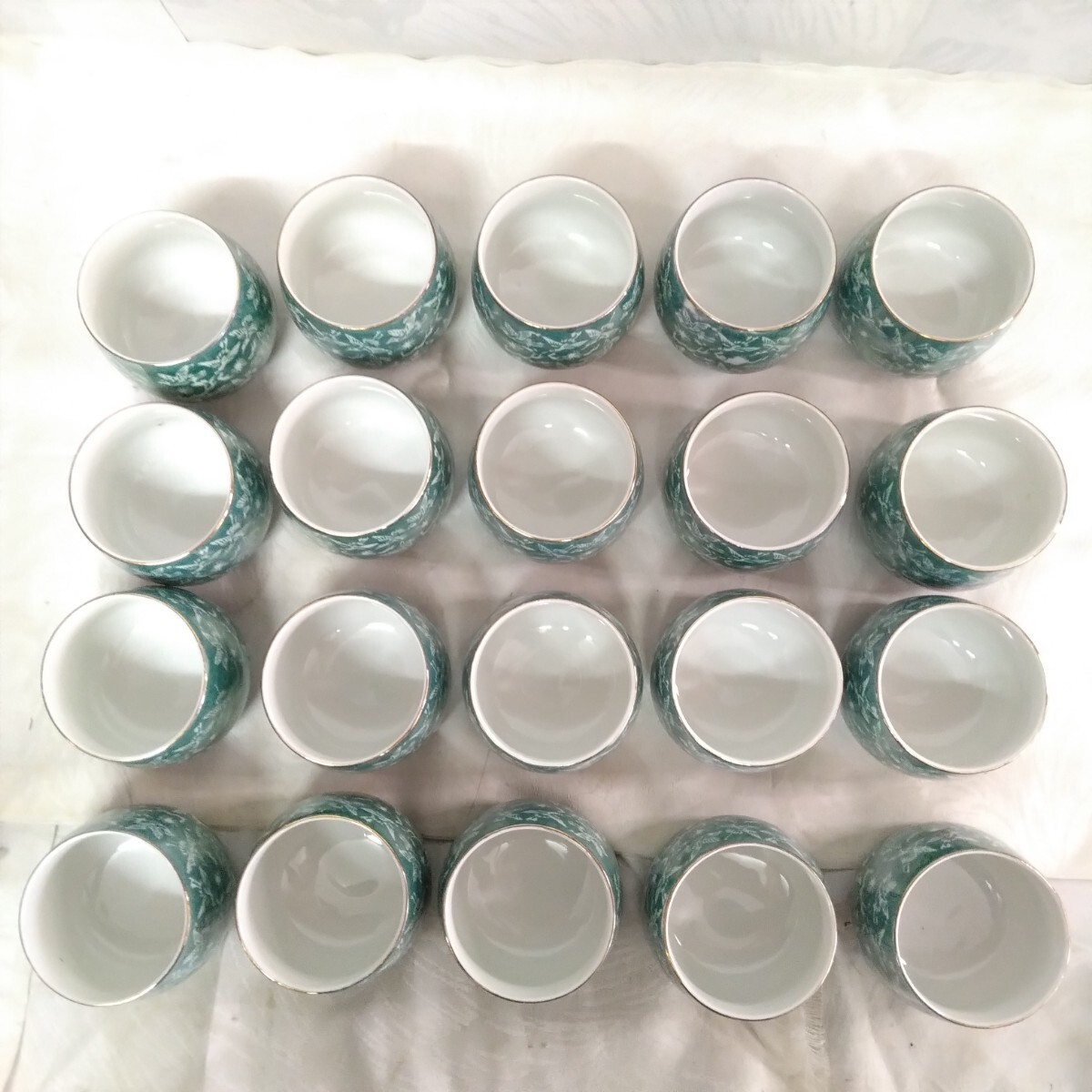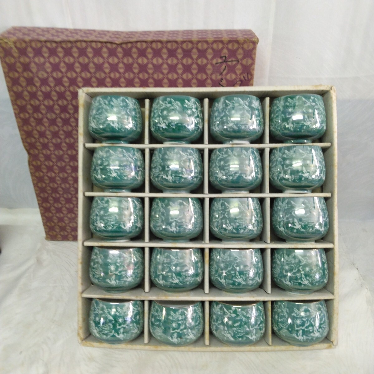 湯呑20客揃 湯のみ 茶器 鶴柄 金縁 緑色 まとめ 食器 和食器 箱付 昭和レトロ