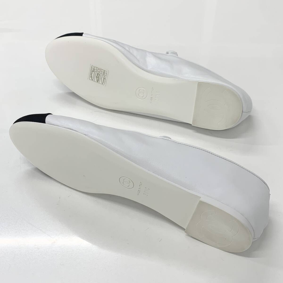 M12361 シャネル レザー ファブリック ココマーク フラットシューズ レッグウォーマー ホワイト