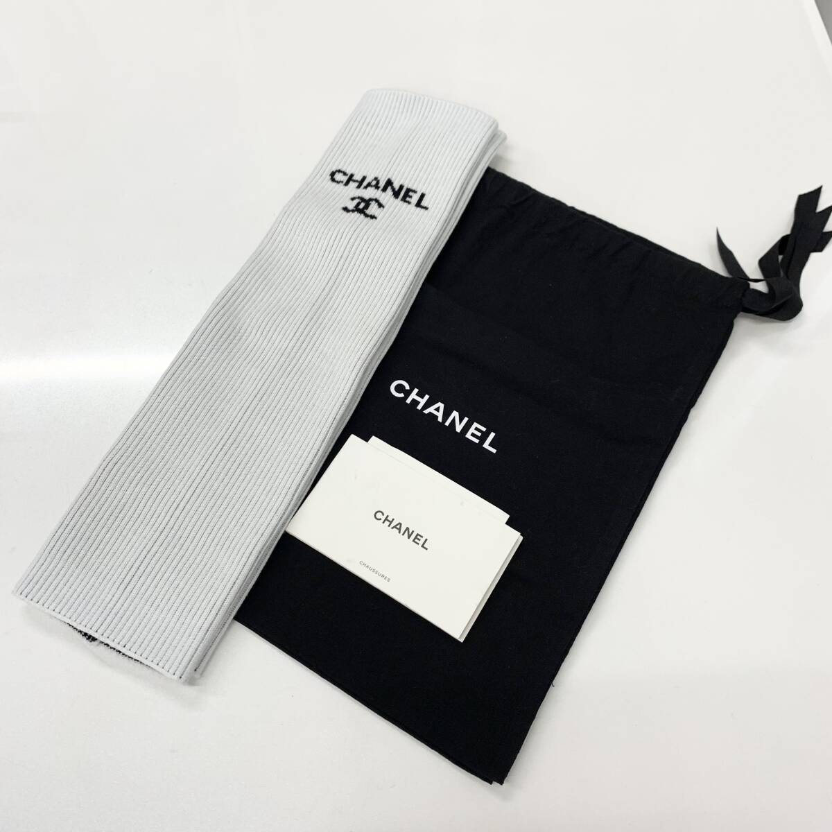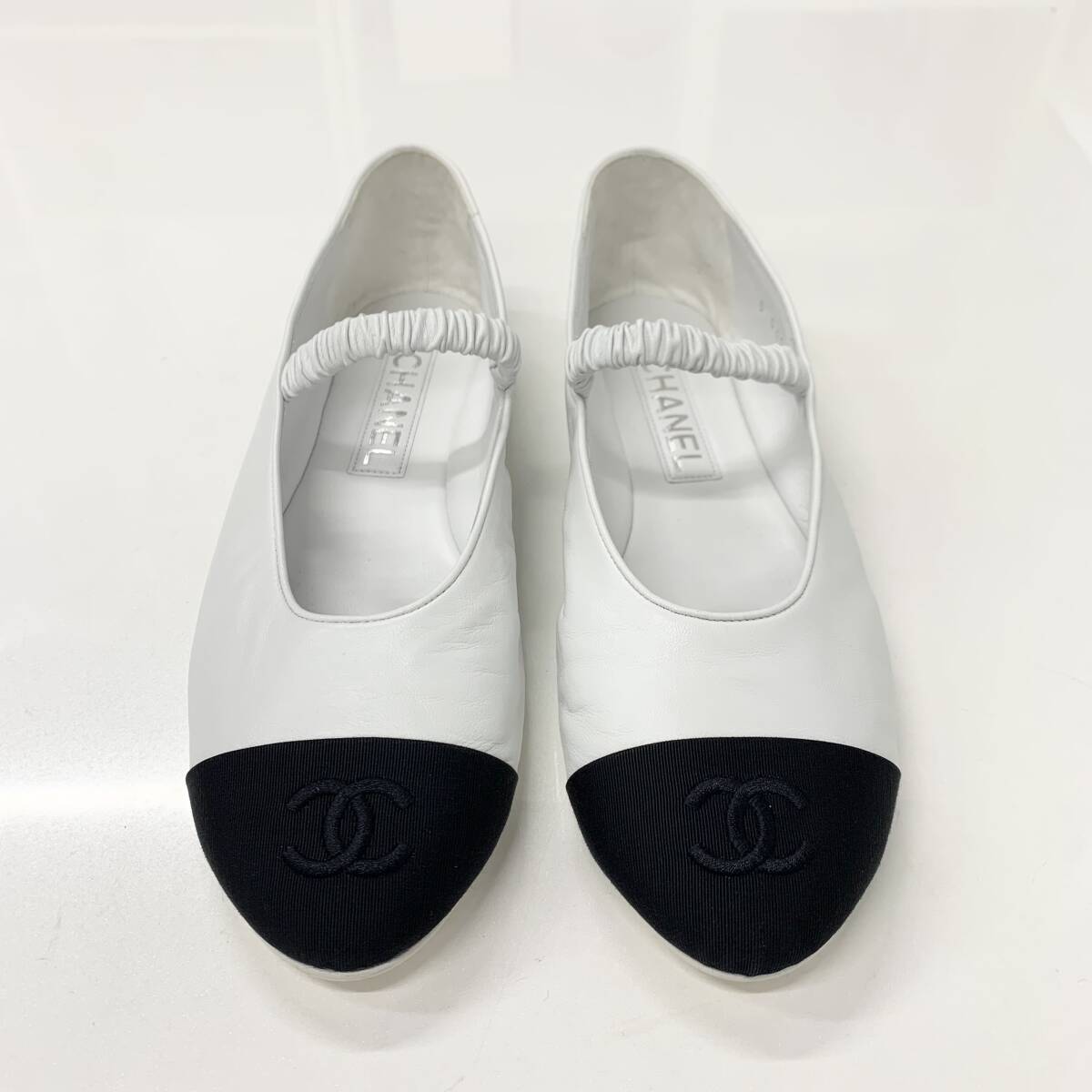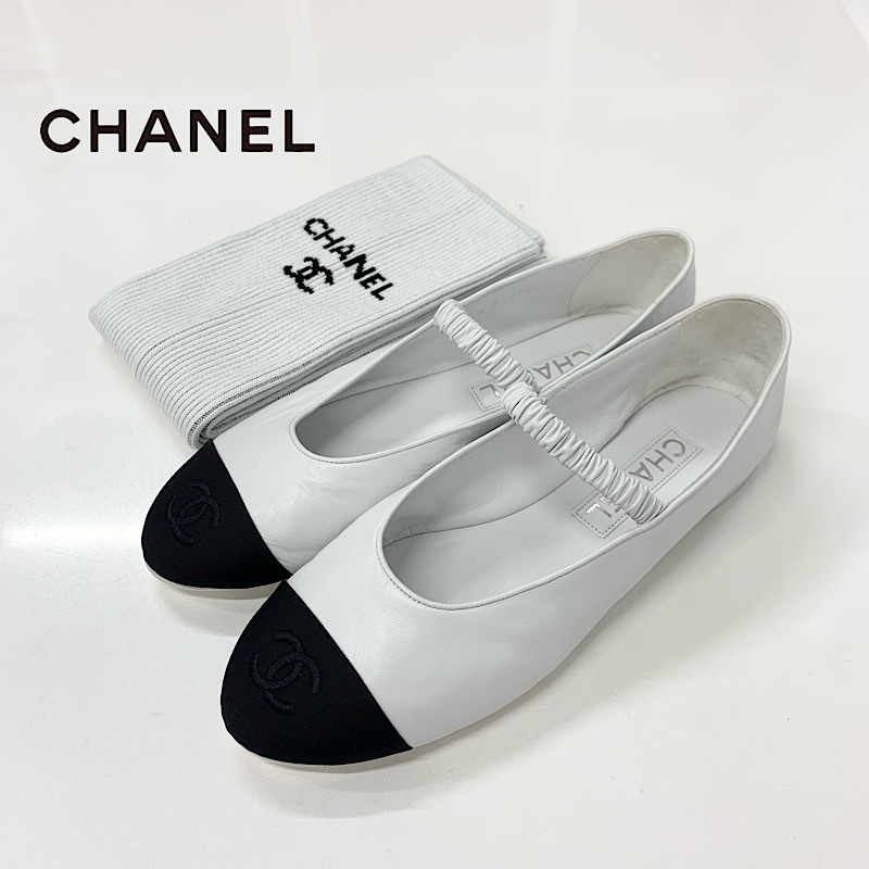 シャネル レザー ファブリック ココマーク フラットシューズ レッグウォーマー ホワイト