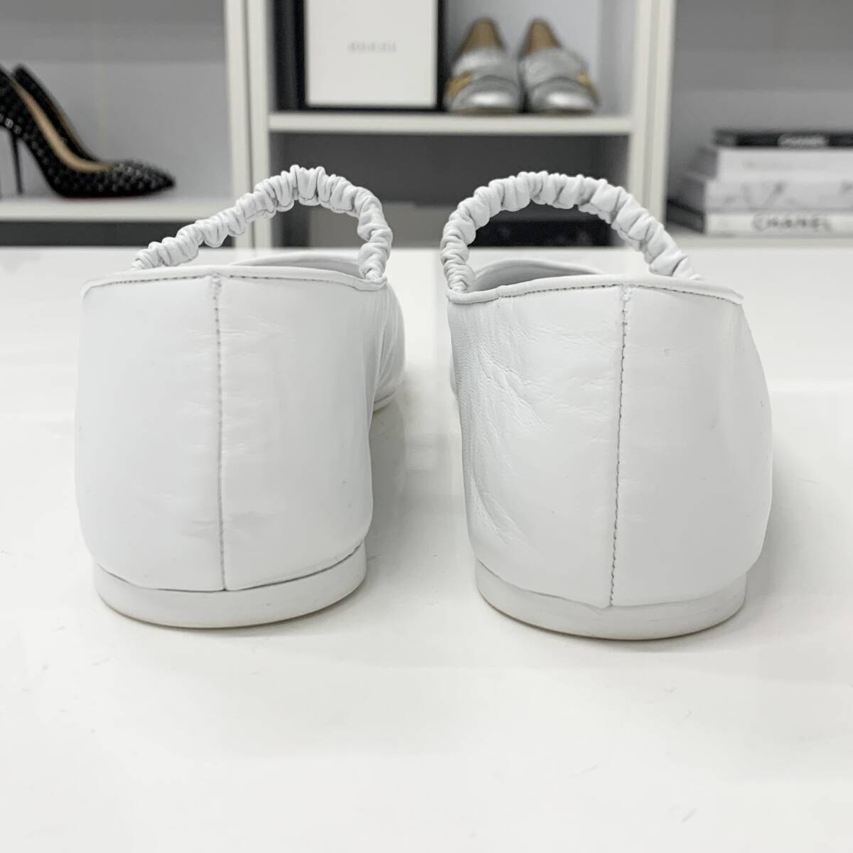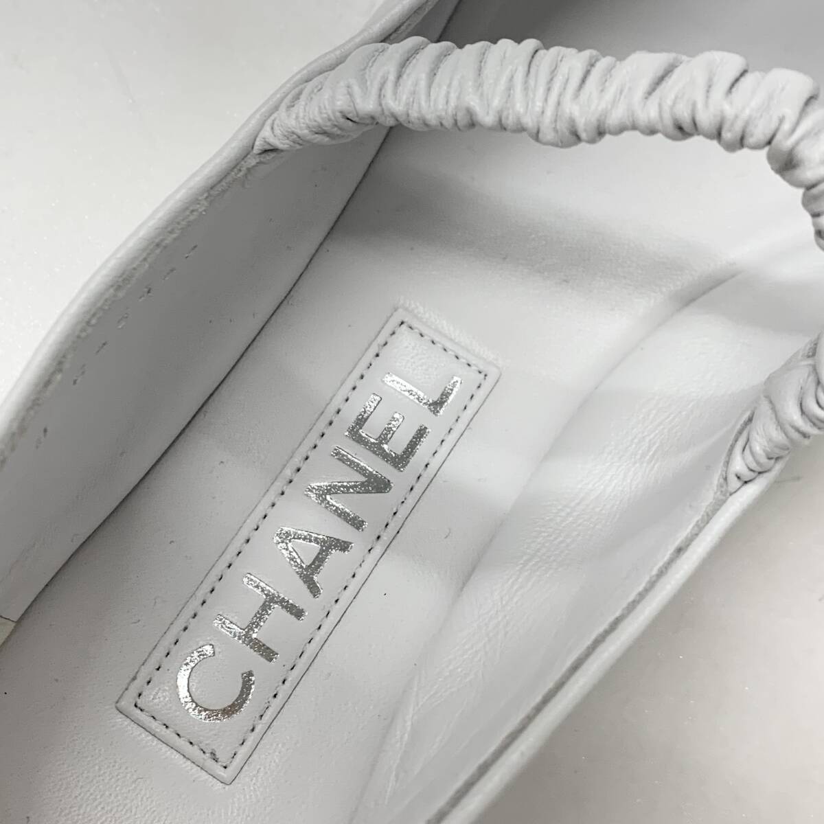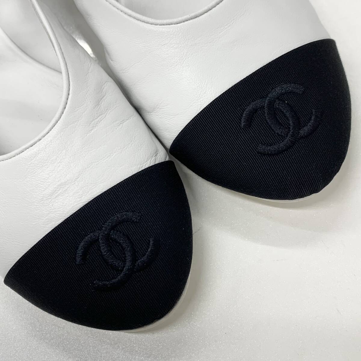 シャネル レザー ファブリック ココマーク フラットシューズ レッグウォーマー ホワイト