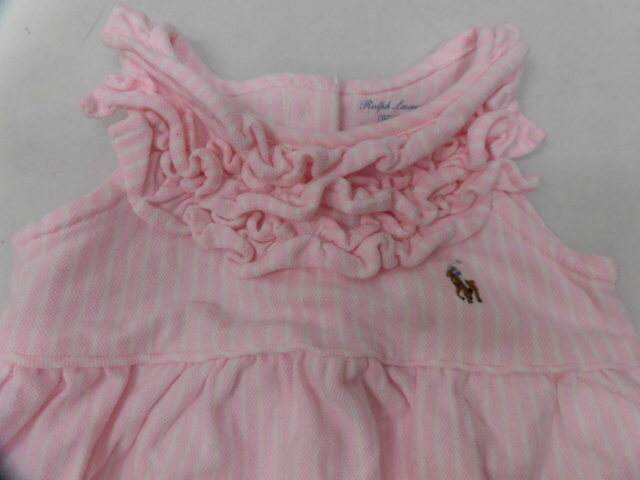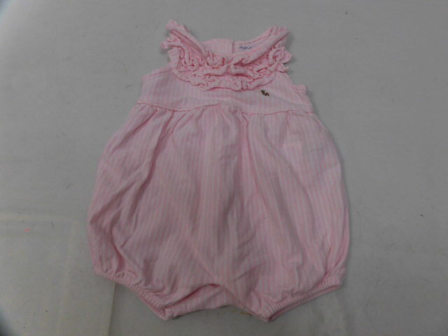 RALPH LAUREN ラルフローレン ノースリーブ ストライプ フリル ロンパース カバーオール ポニー刺繍 ピンク 60 ベビー 赤ちゃん 女の子