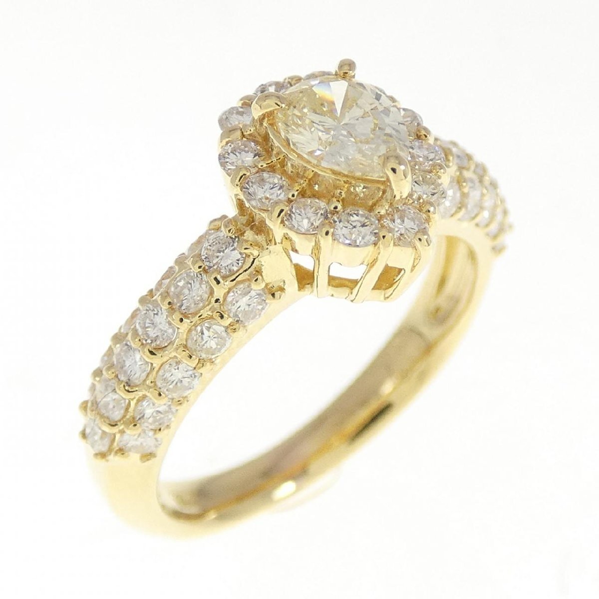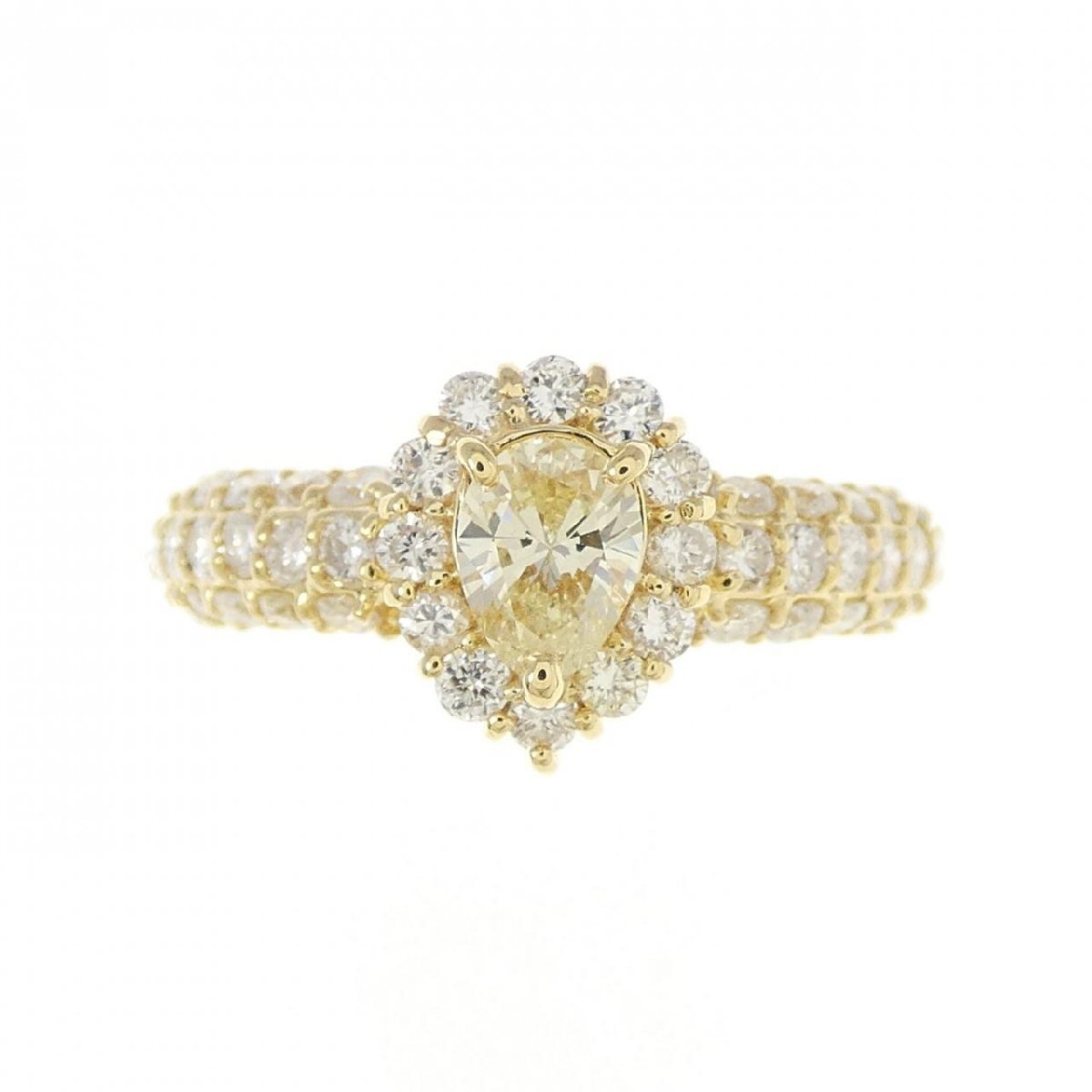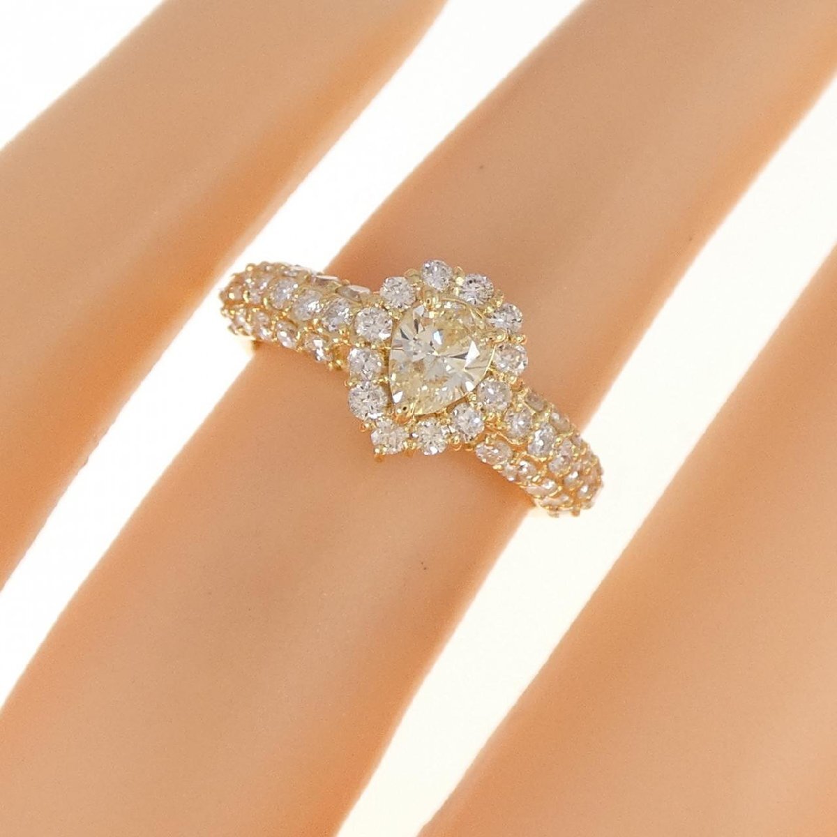 イエローカラーのダイヤモンドがあしらわれたリング。指元を上品に飾ってくれるジュエリーです。