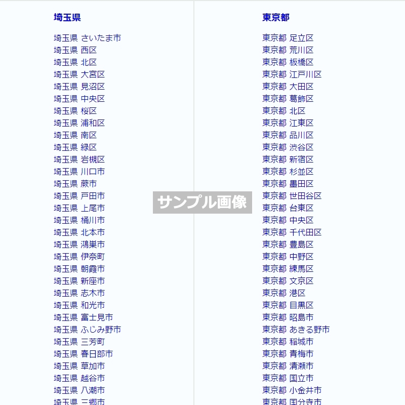 例えば「東京都 足立区」の都市名をクリックすると、東京都足立区の