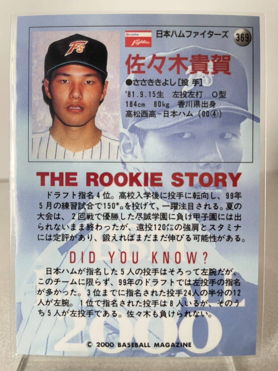 佐々木貴賀 ルーキーカード 369 BBM 2000 ベースボールマガジン 日本ハムファイターズ
