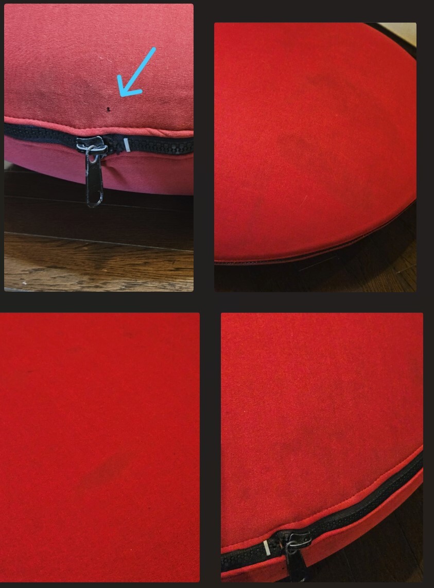 ※正確な個人情報が記載されていない方、受け取り連絡をすぐにしていただけない 方の入札をお断りいたします。 ※受取連絡の依頼を無視し続ける方は、YAHOOサイドに問い合わせを入れるよう にしております。 30年近く前、青山骨董通りにあったインテリアショップ『E&Y』で購入した UFO型?どら焼き型?のオットマンです。 デザイナー名、製造会社は不明です。商品を確認してもなにも記述は見つけられませんでした。 表面は、ウェットスーツ生地を使っているとの説明を受けた記憶があります。 中身は高反発ウレタンです。(柔らかくありません) 直径: 約75cm 高さ : 約30cm 重量: 約7.8kg カッコイイのですが、あまり置く機会がなく、ほとんど倉庫に仕舞っていました。 ファスナーは正常、素材に目立つ劣化やベタツキなどありません。 ただし、全体的な使用感、一部に小さな破れ、傷、薄汚れ、シミ?などあります。 画像や説明文に書き込まれた文章をご確認上ご検討ください。 ノークレームノーリターンノーサポートにてご検討ください。 よろしくお願いします。 | |||