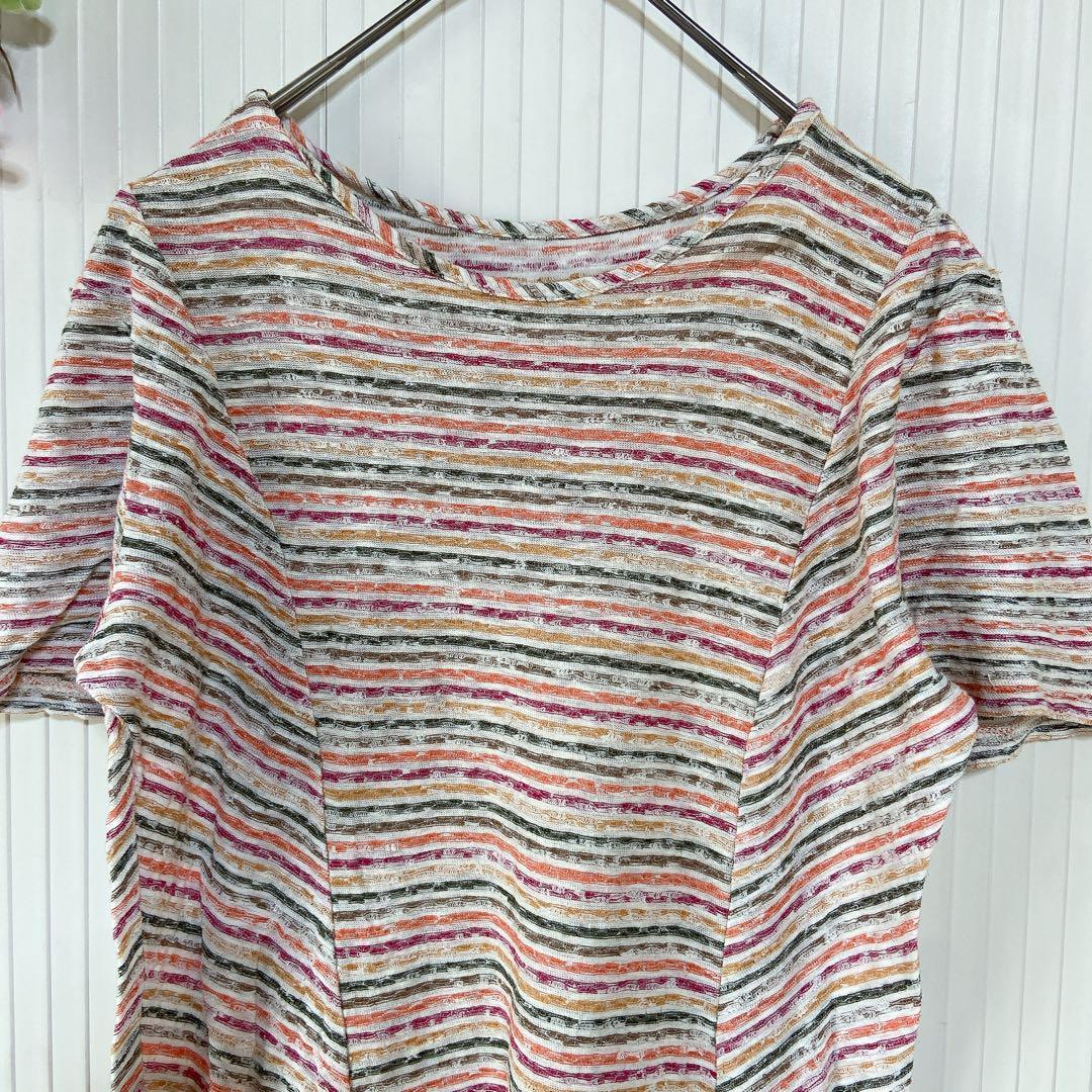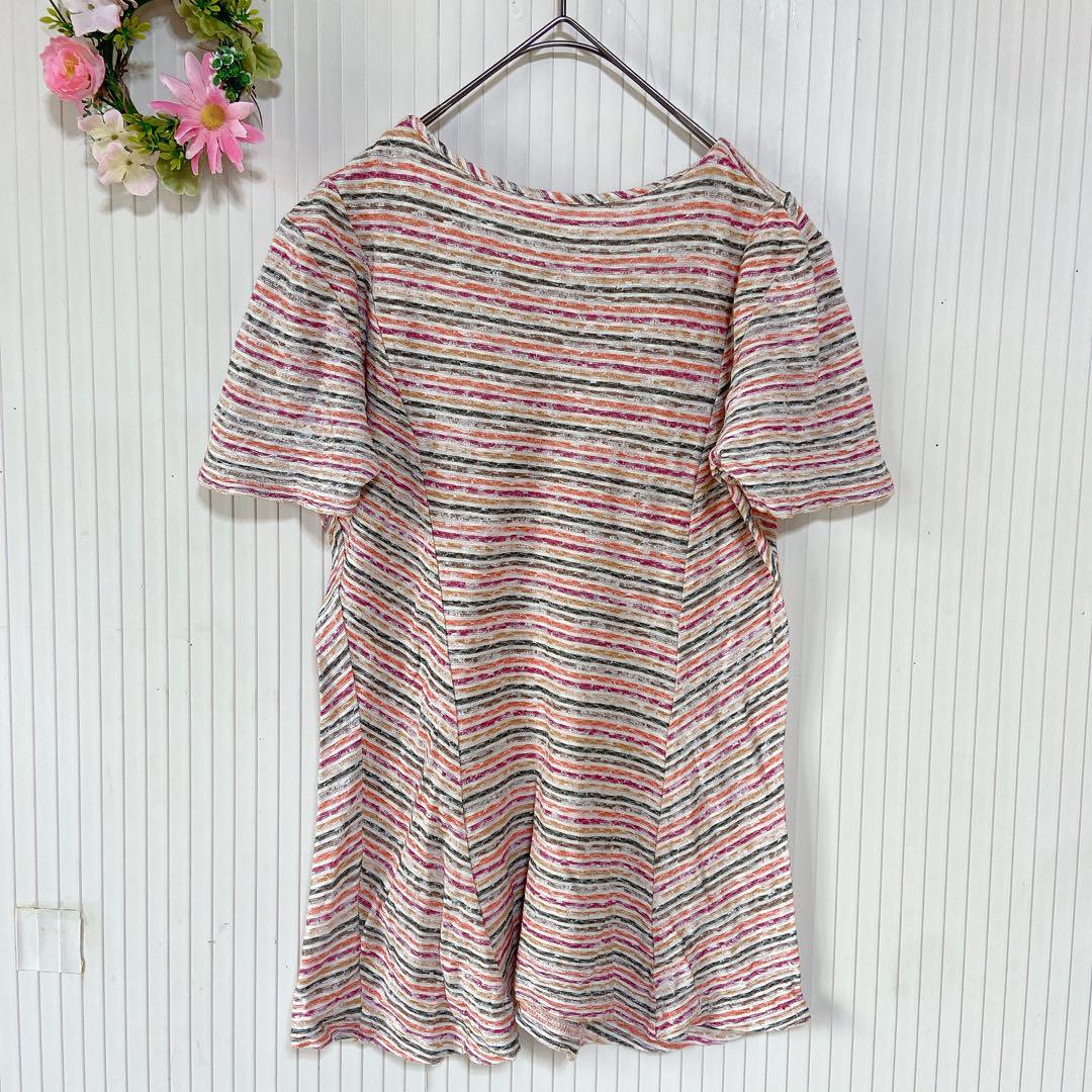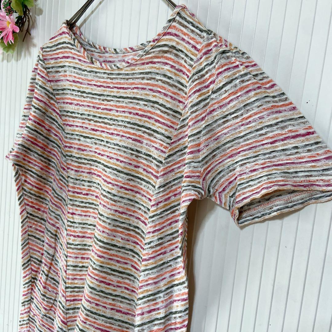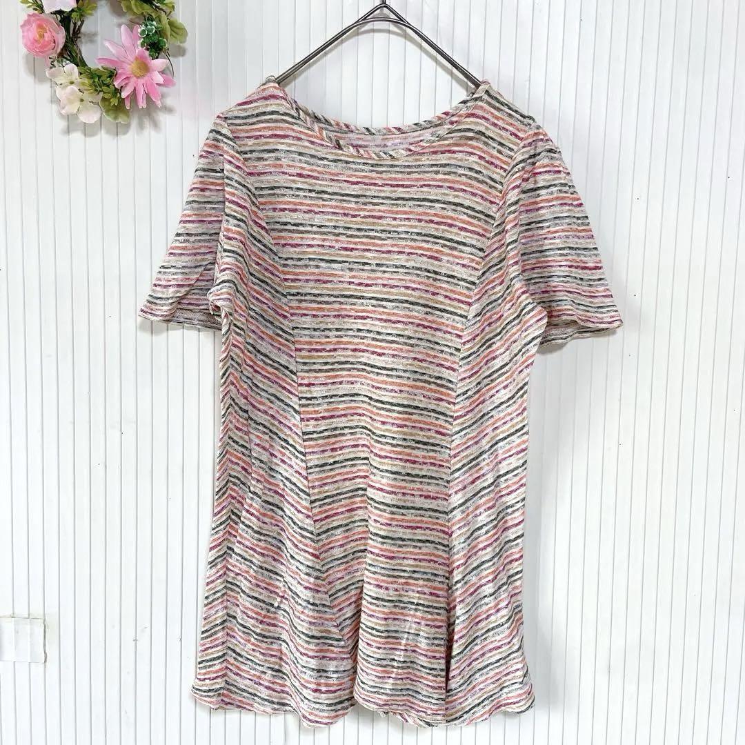61-48 -大特価ー 【良品】 ジャンニロジュディチェ リネン混 綿麻 シャツ カットソー (S) 半袖 GIANNI LO GIUDICE ボーダー Aライン
