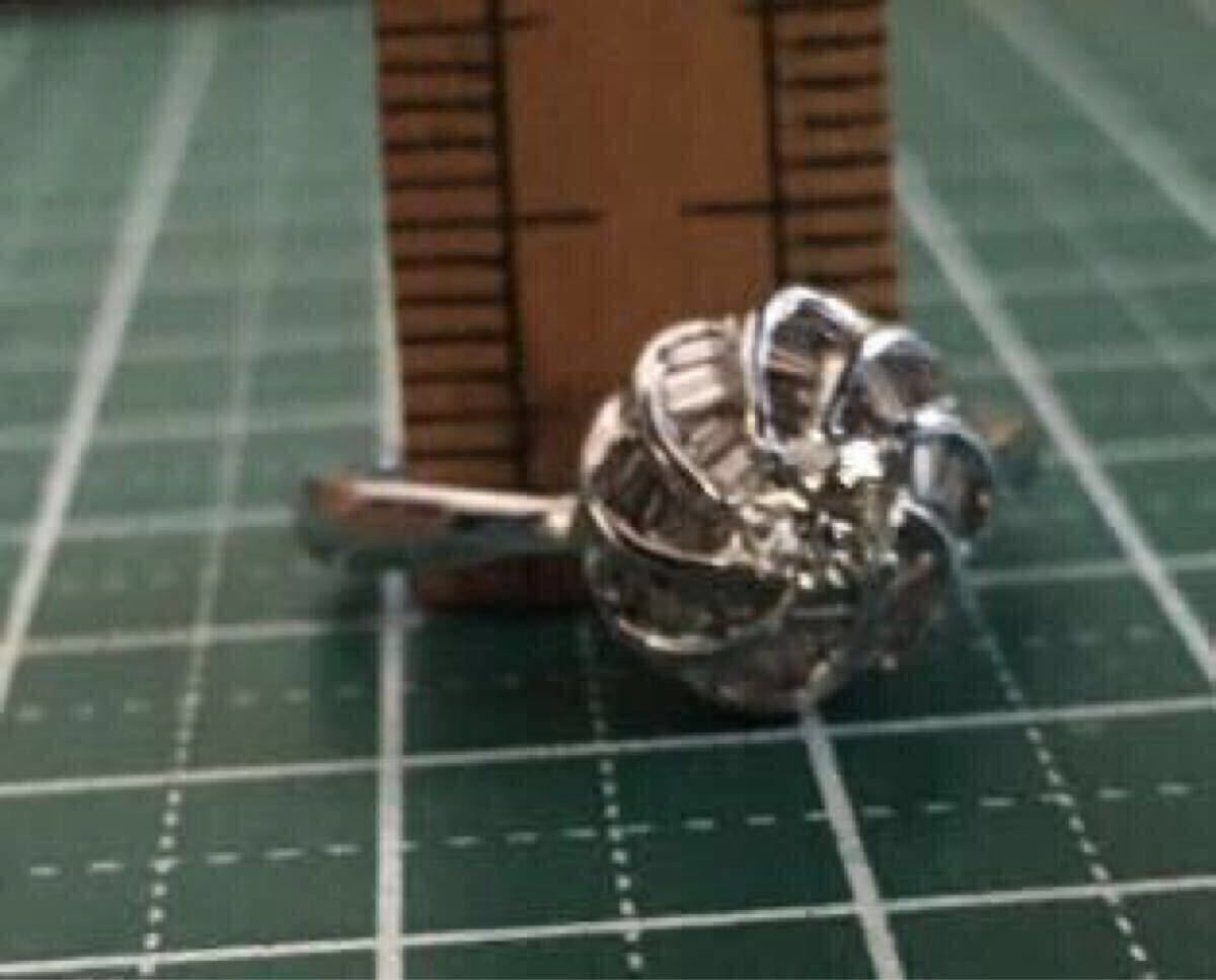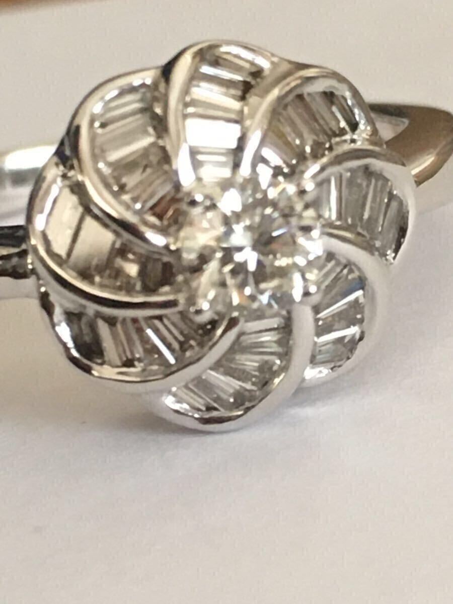 真ん中にロシアンダイヤモンドをあしらいテーパーダイヤが風車のようなリングになります
