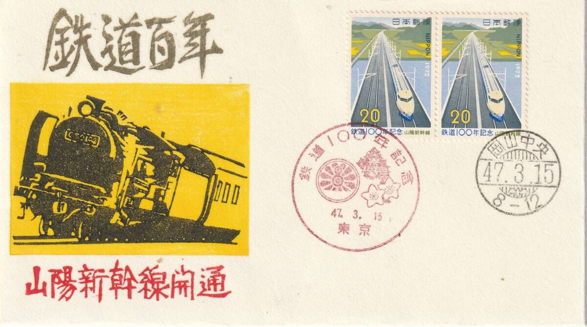 FDC 1972年  鉄道100年記念  20円2貼2消し  FKK木版 限定300部