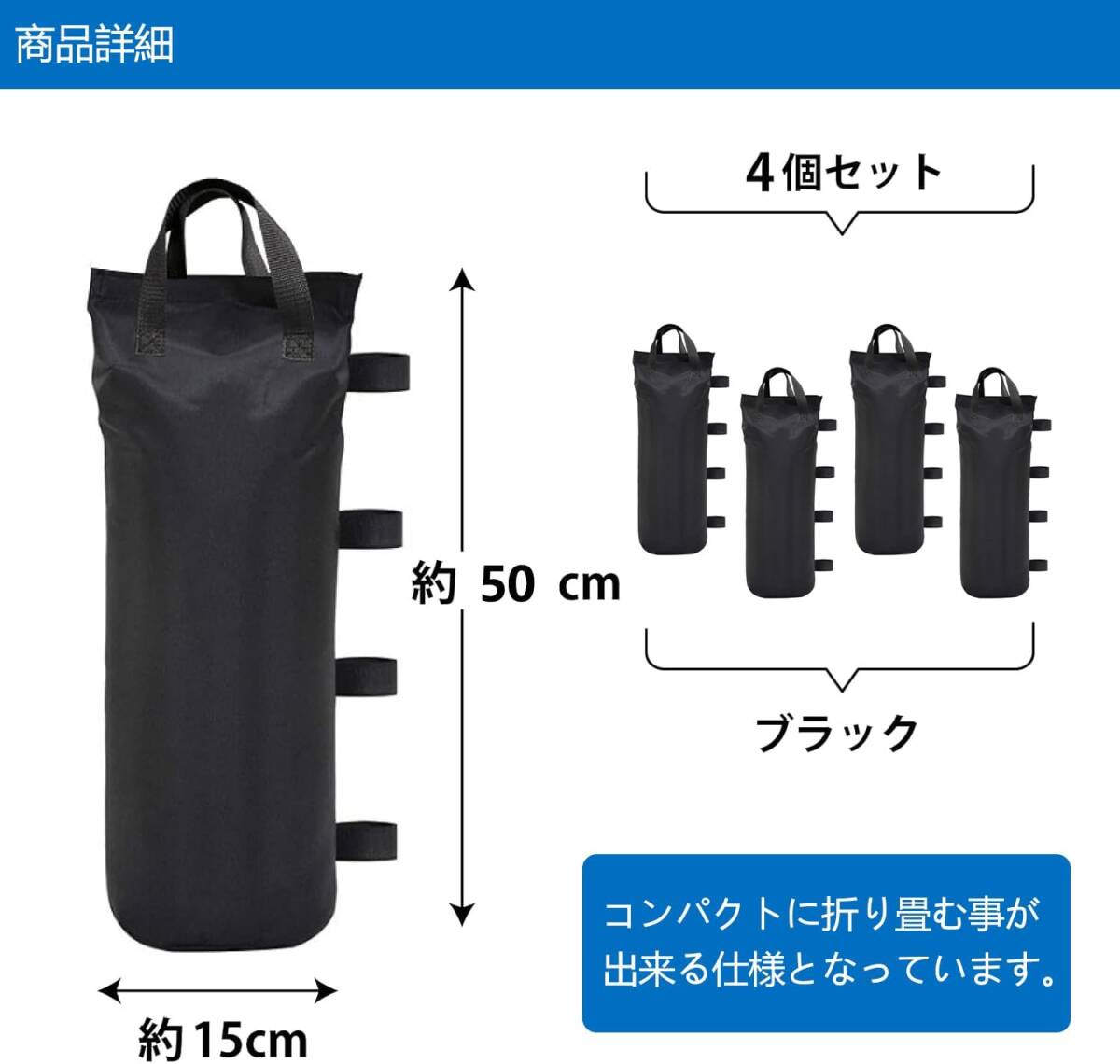 強い風でも物が飛ばない 丈夫で耐久性抜群 重し袋 4個入り イベントやキャンプテントなど