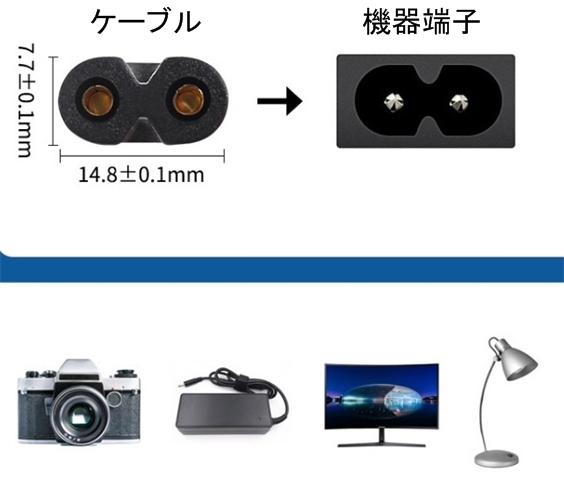 機器側の端子形状がメガネ型、8字(写真3)になっていましたら