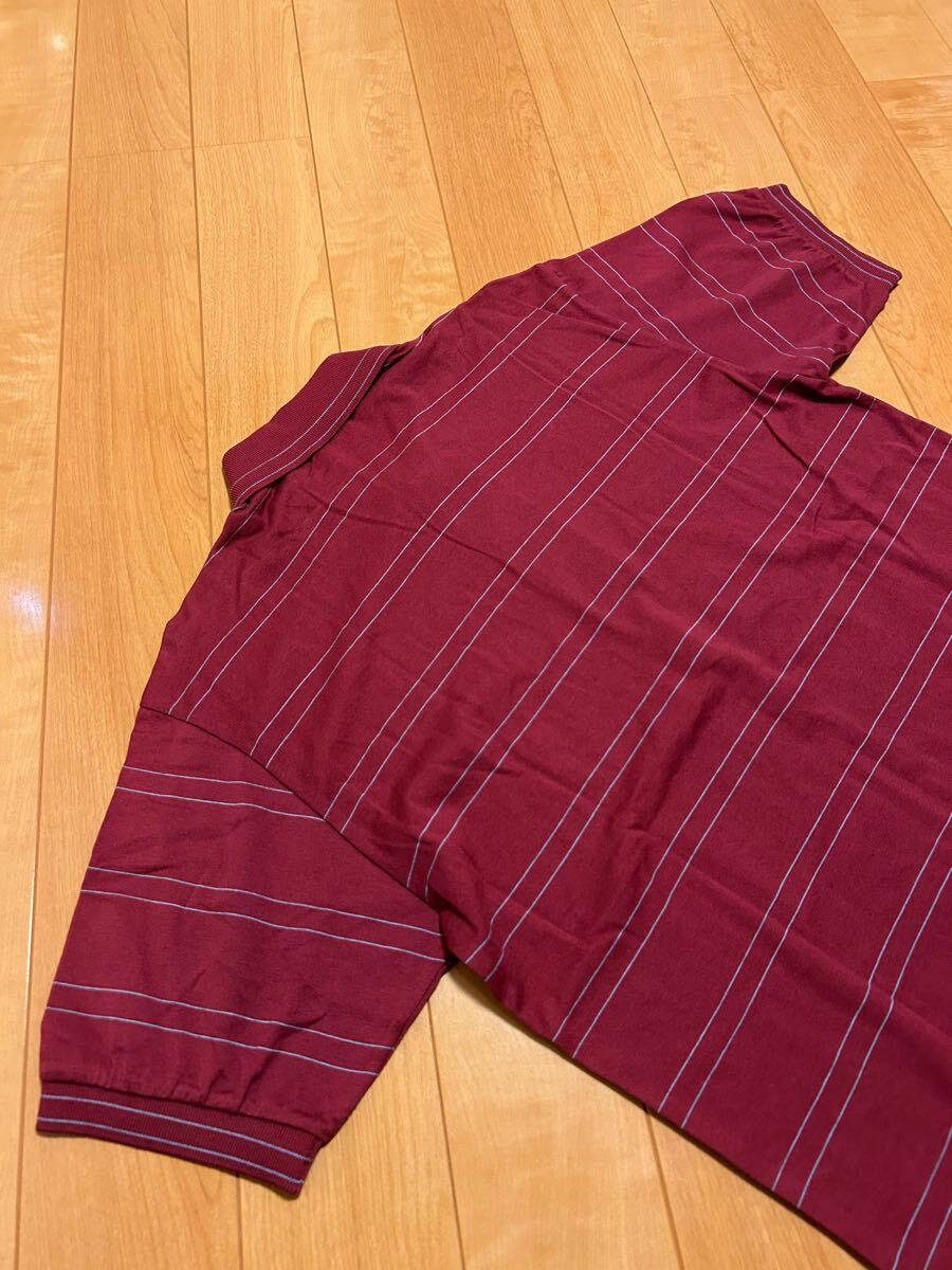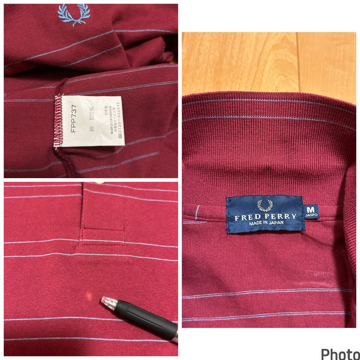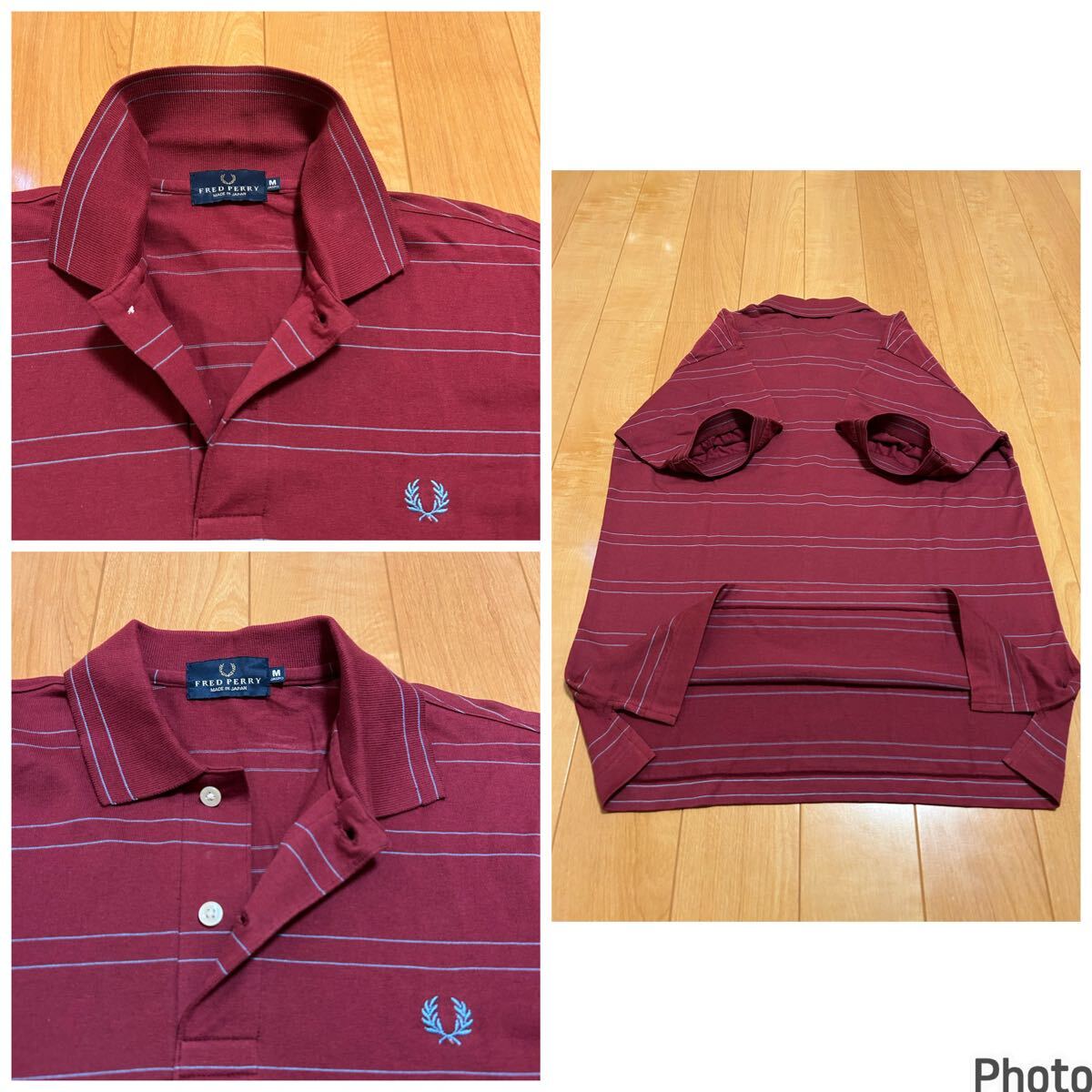 着用少な目.美品☆FRED PERRY/フレッドペリー メンズオーバーサイズM大き目 半袖ボーダー柄.ポロシャツ ロゴ刺繍入・襟&袖口リブライン入