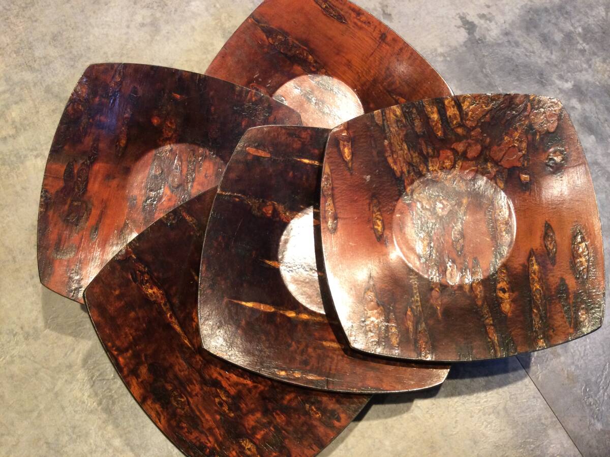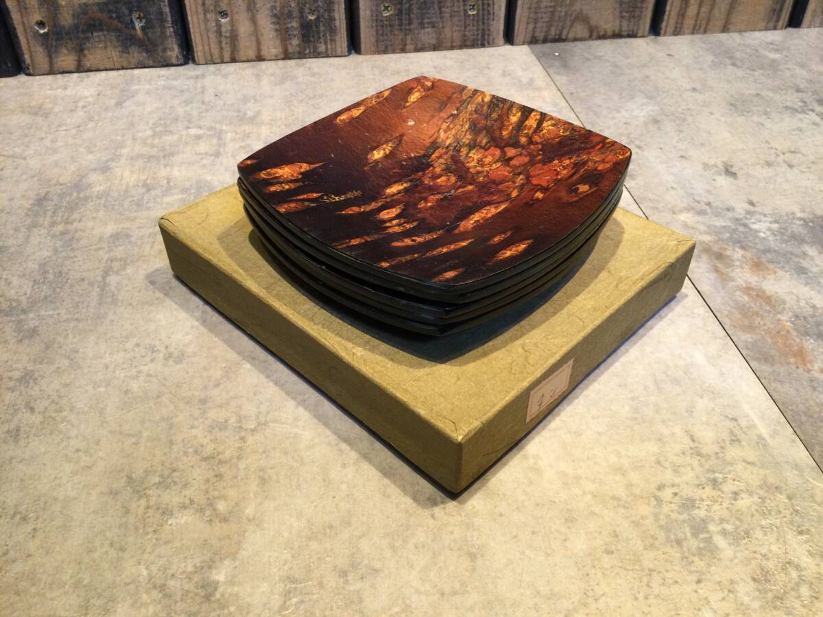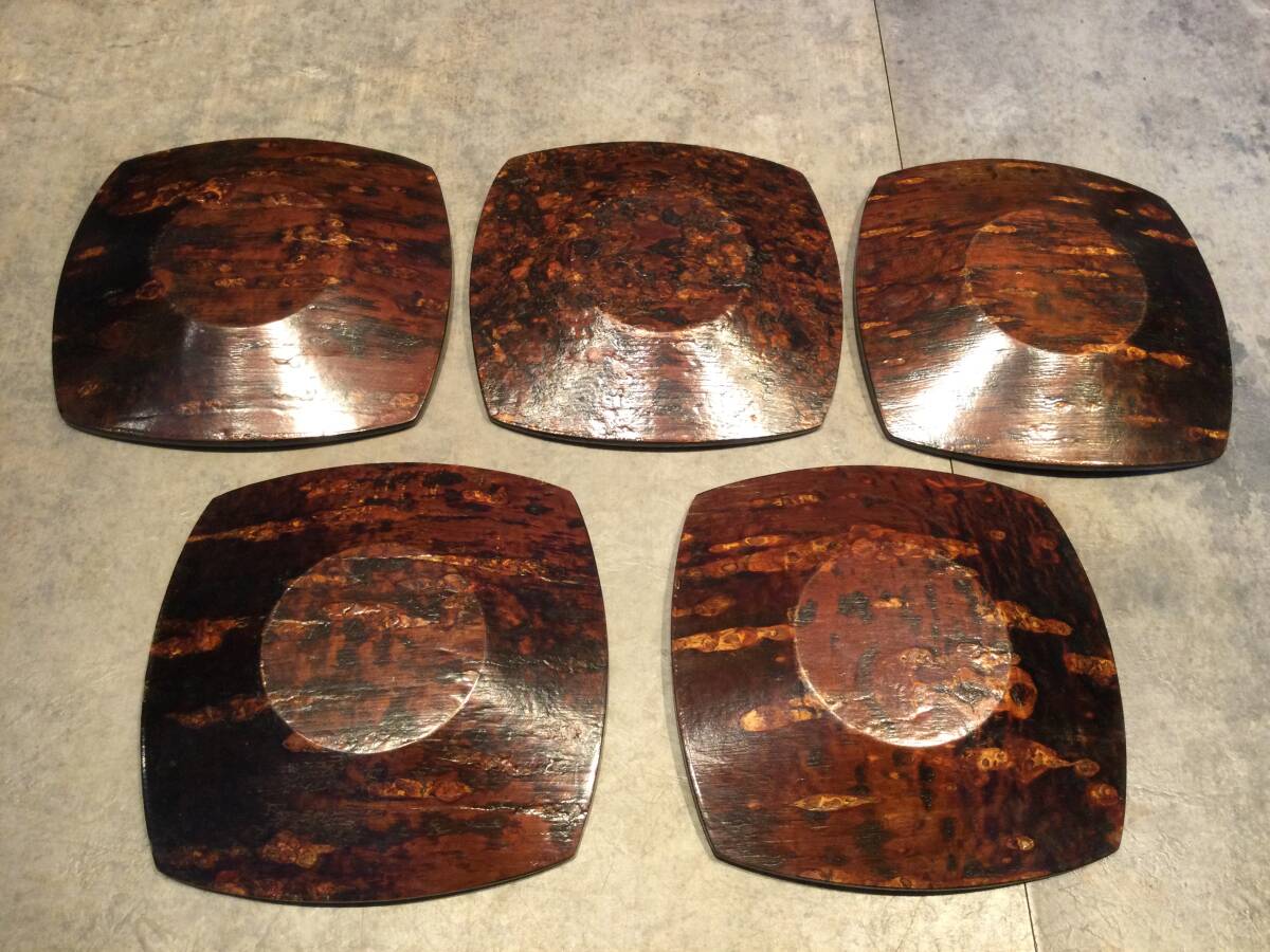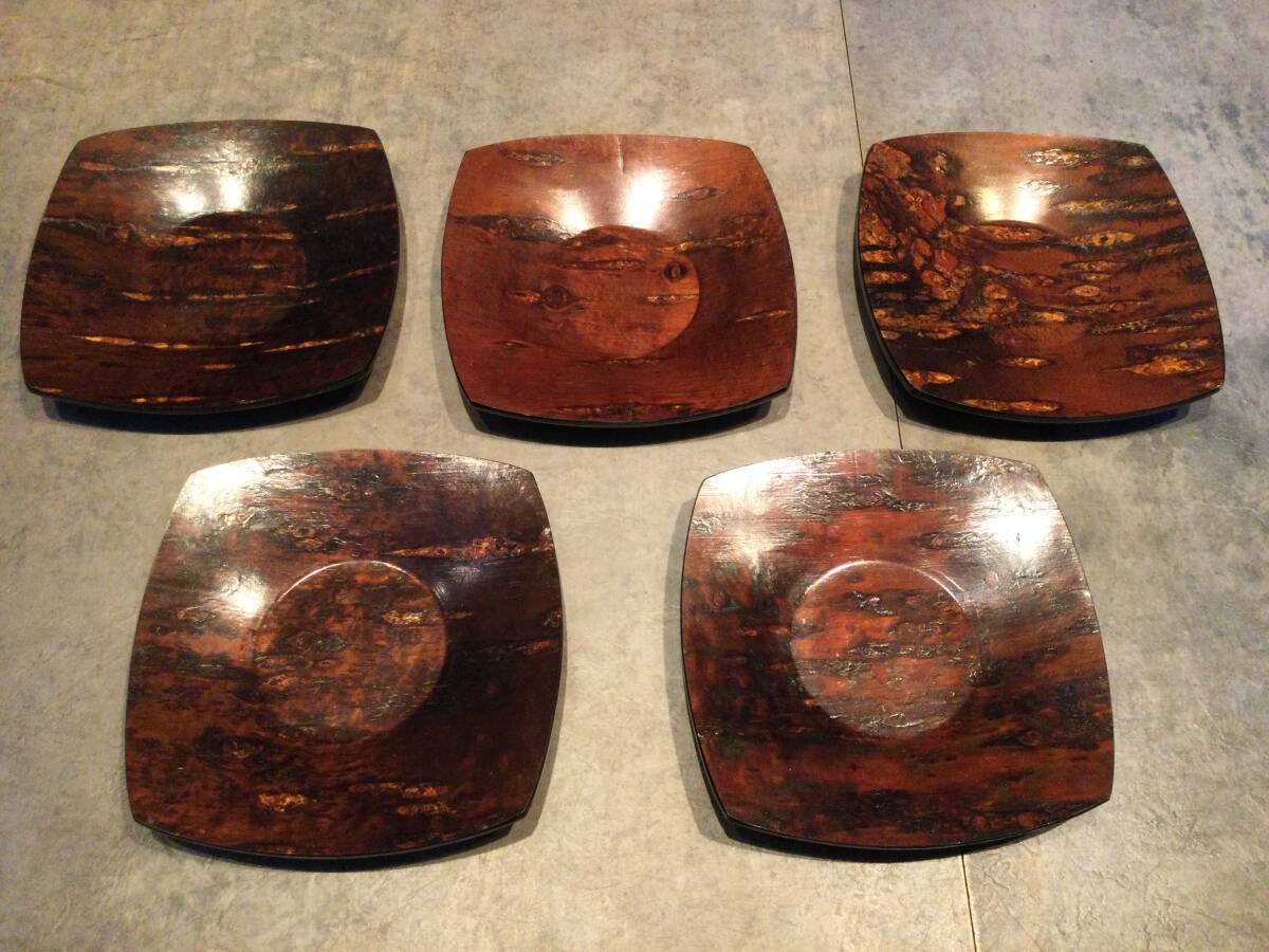 桜皮細工 茶托(5枚) フォーク(15本)セット 秋田 漆器 伝統工芸品 茶托 煎茶道具 トレー 保管品