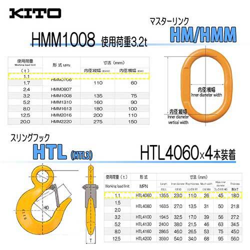 ◆KITO仕様ワイヤロープ12mm(4分)4点吊り◆ | ||||