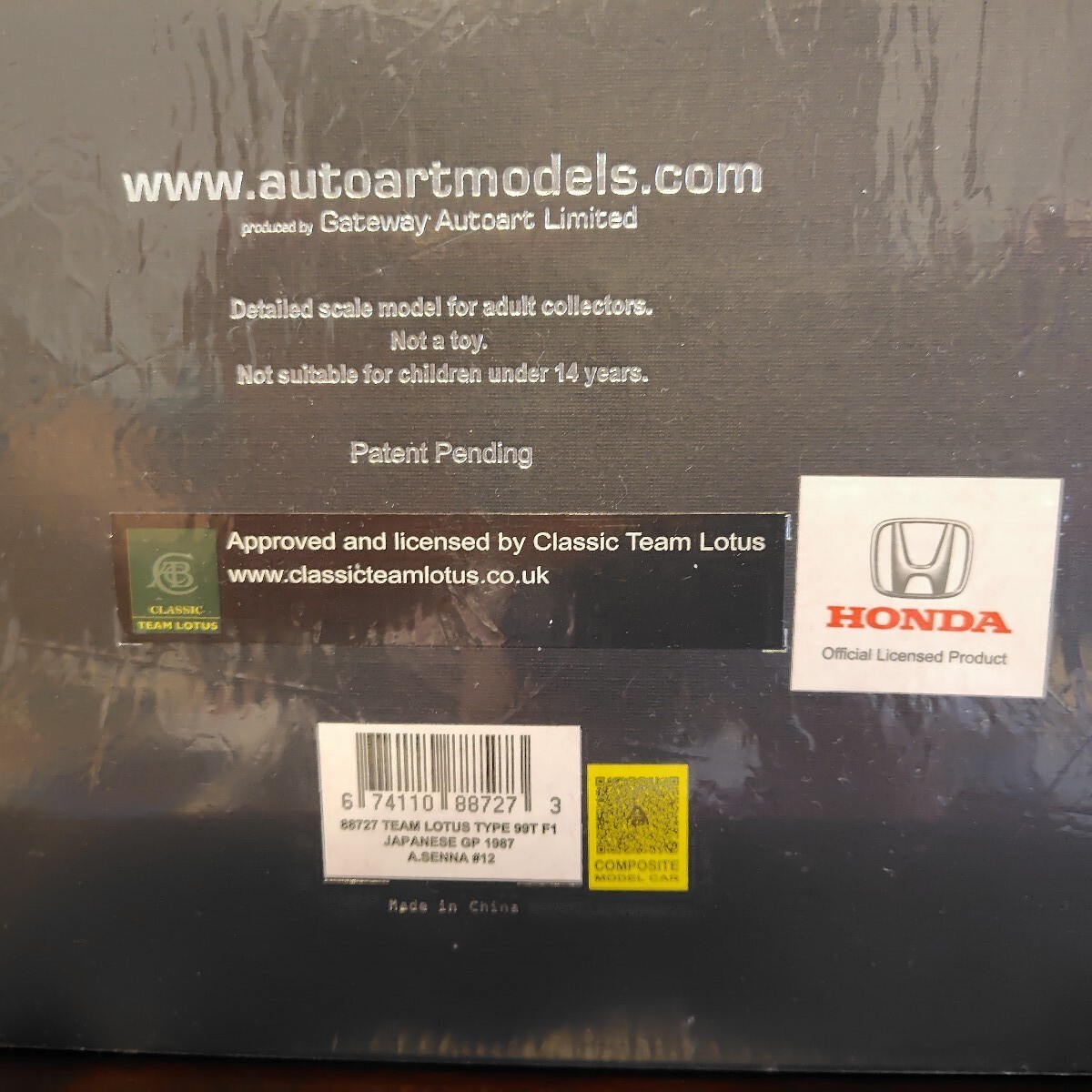 何年か前にオートアートから発売されているのを見て販売店を検索して注文し購入しました。写真にある通り、カーナンバー12のアイルトン・セナ仕様です。届いた時に段ボールを開けて中に物が入っていることを確認はしましたが開封はしませんでした。そのまま未開封で今日に至り、このまま引き取ってくれるアイルトン・セナファンの方にお譲りしたいたいと思っています。未開封にてオートアートロータスホンダ99Tで検索頂くか、ヤフオク・ヤフフリマでも検索頂くと2〜3個出てきますので中身はお分かりになると思います。開けて飾るも良し、そのままねむらせるも良しです。退職に伴うコレクション整理です。宜しくお願い致します。