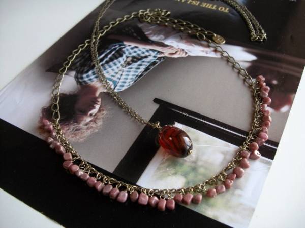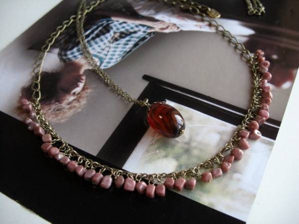 物語をアートして・・シリーズです♪大人色の組み合わせ・・シックなロードナイトとアンティーク・バンデッド・アゲートのネックレス2点セットです♪ダークピンクのロードとコニャック色のバンデッド・アゲートがニューヨーク・モダンしています♪ロードナイトは5ミリ位のミニ・タンブルをデザインチェーンに合わせました♪長さは全長70センチ位で調節自由です♪チョーカー風にされても素敵です♪座金でおめかししたバンデッド・アゲートは23×15ミリ位です♪華奢なチェーンを合わせました♪長さは88センチ+アジャスター12センチで最長100センチ位です♪それぞれ単品やブレスレットも出品しています♪ハンドメイドをご理解頂いてノークレーム、ノーリターンでお願いします