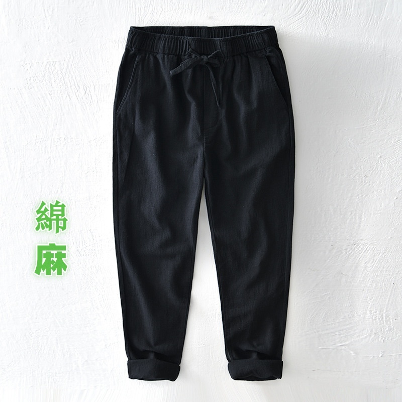 リネンパンツ メンズ*新品 綿麻 サマーパンツ スラックス 春夏服通気 海パンツ イージーパンツ ズボン【L8223】黒 2XL