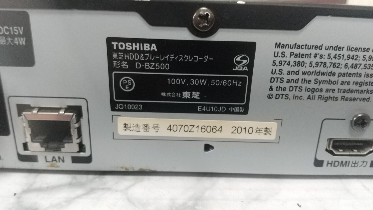 K4001 TOSHIBA REGZA D-BZ500 2010年製 ブルーレイレコーダー/東芝/レグザ その他不具合あり 現状品 JUNK