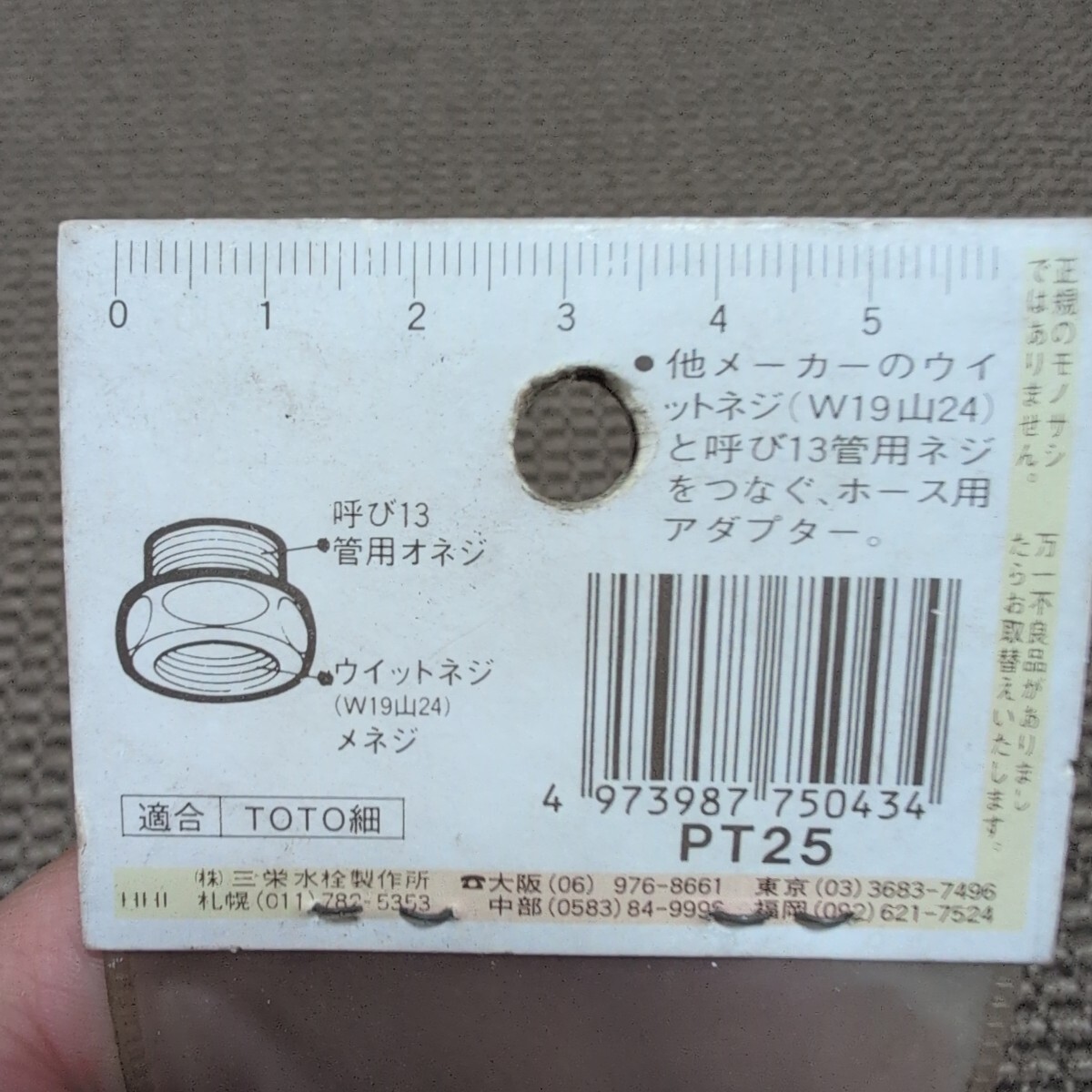 ジャンク品/長期保管品/中古/サンエイ/シャワーアダプター/PT25/TOTO社製他小口径混合栓に/ウィットネジW19山24〆ネジ