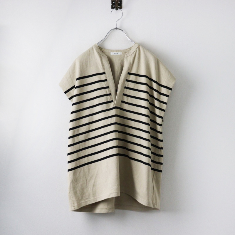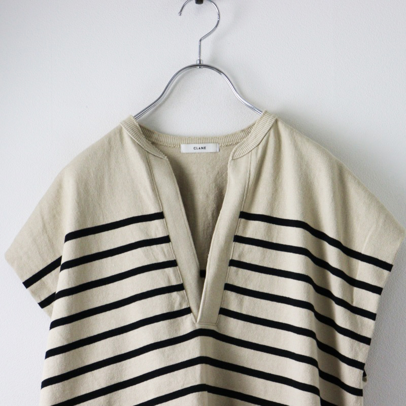 クラネ CLANE WIDE HENLEY NECK N/S BORDER TOPS ワイドヘンリーネックノースリーブボーダートップス 1 ベージュ【2400014460124】