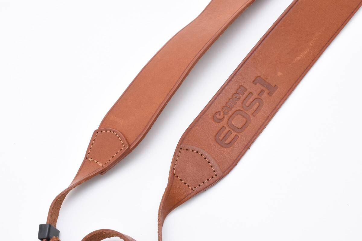 ★★★Canon EOS-1 革 カメラ ストラップ キャメル 茶色 CPE 皮 レザー 型押し 英文字 キャノン★★★