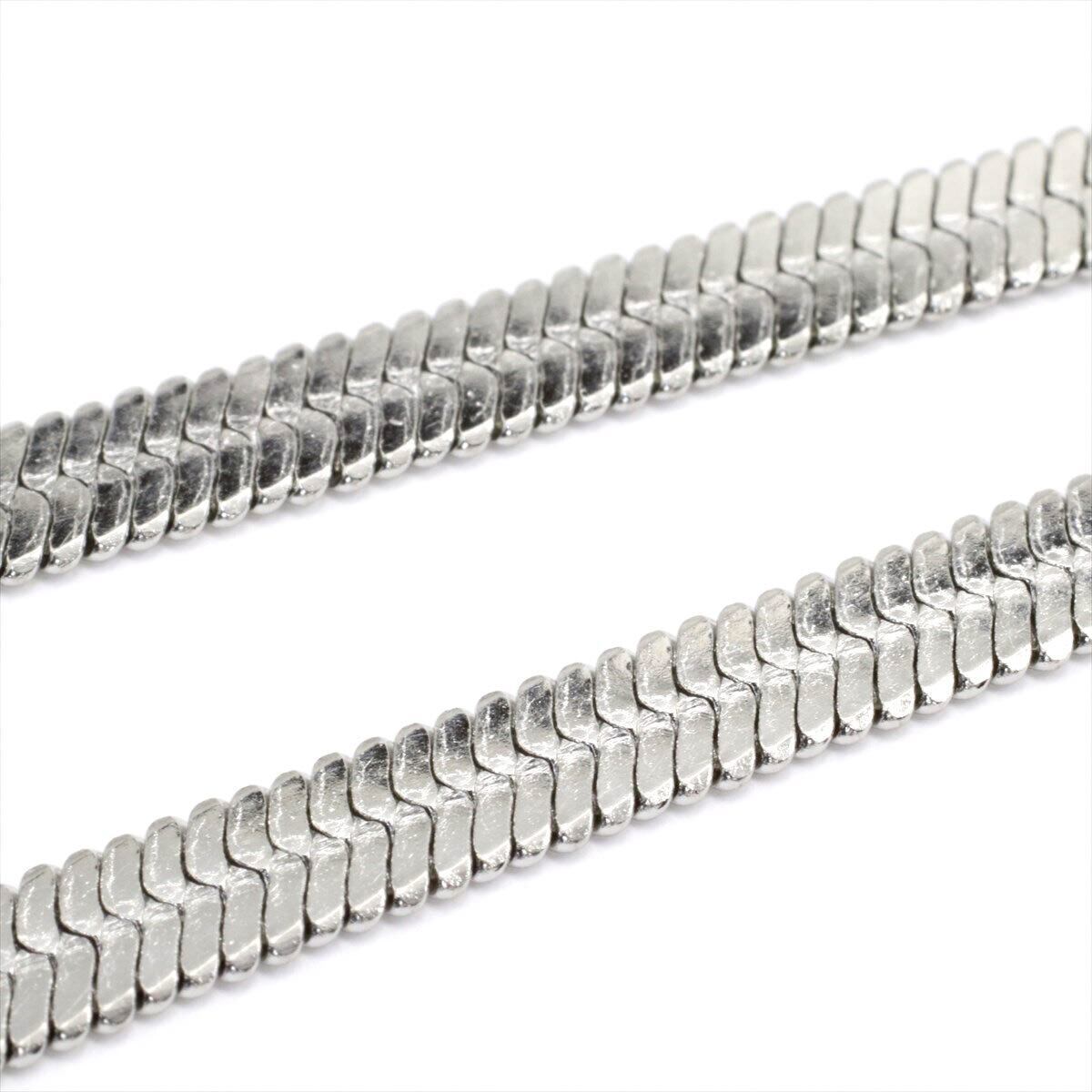 鉄に約18%のクロムを合金したものでステンレスの正式名称はSteel Use Stainless(鋼、使う、汚れが少ない)と言います。様々な用途に使われるステンレスですが、その中でもSUS430は磁性があり鉄や真鍮、メッキを施したネックレスよりも汗に強い、変色しにくい、錆びに強い、金属アレルギーを起こしにくいという特徴があります。鉛・カドミウム・ニッケルフリーですがサージカルステンレス(SUS316L)ではありませんのでご注意下さい。