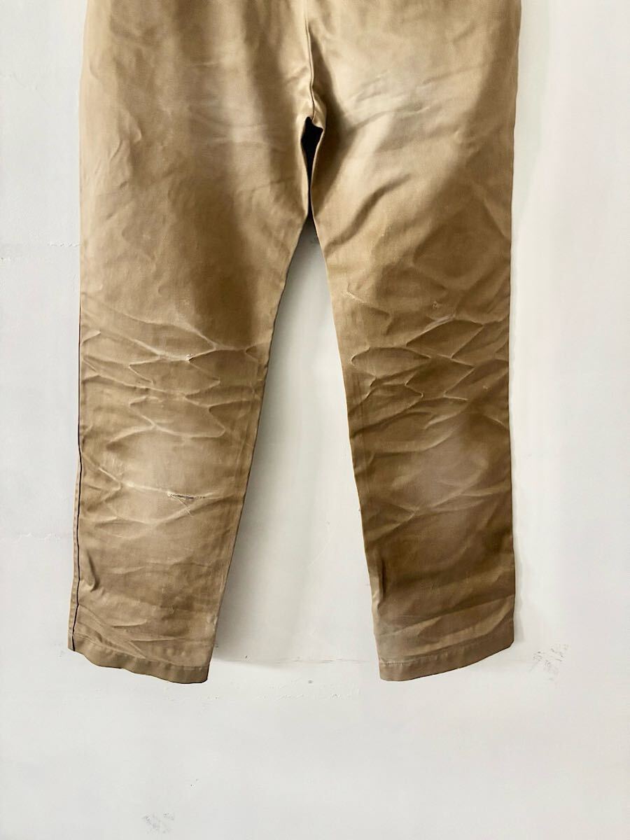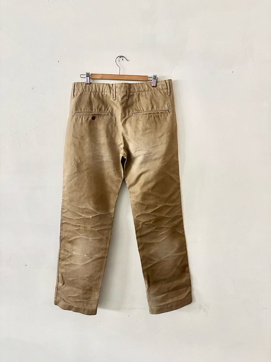 カラーはカーキベージュでダメージ加工が施されたチノパンです。